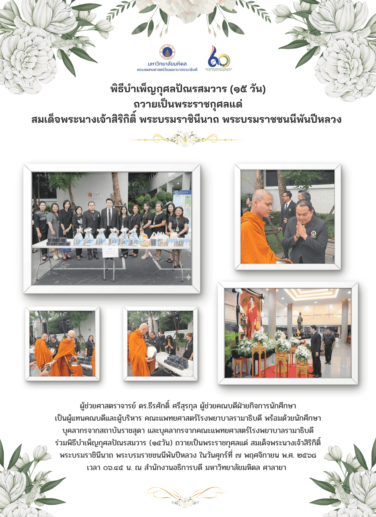 พิธีบำเพ็ญกุศลปัณรสมวาร (๑๕ วัน) ถวายเป็นพระราชกุศลแด่ สมเด็จพระนางเจ้าสิริกิติ์ พระบรมราชินีนาถ พระบรมราชชนนีพันปีหลวง