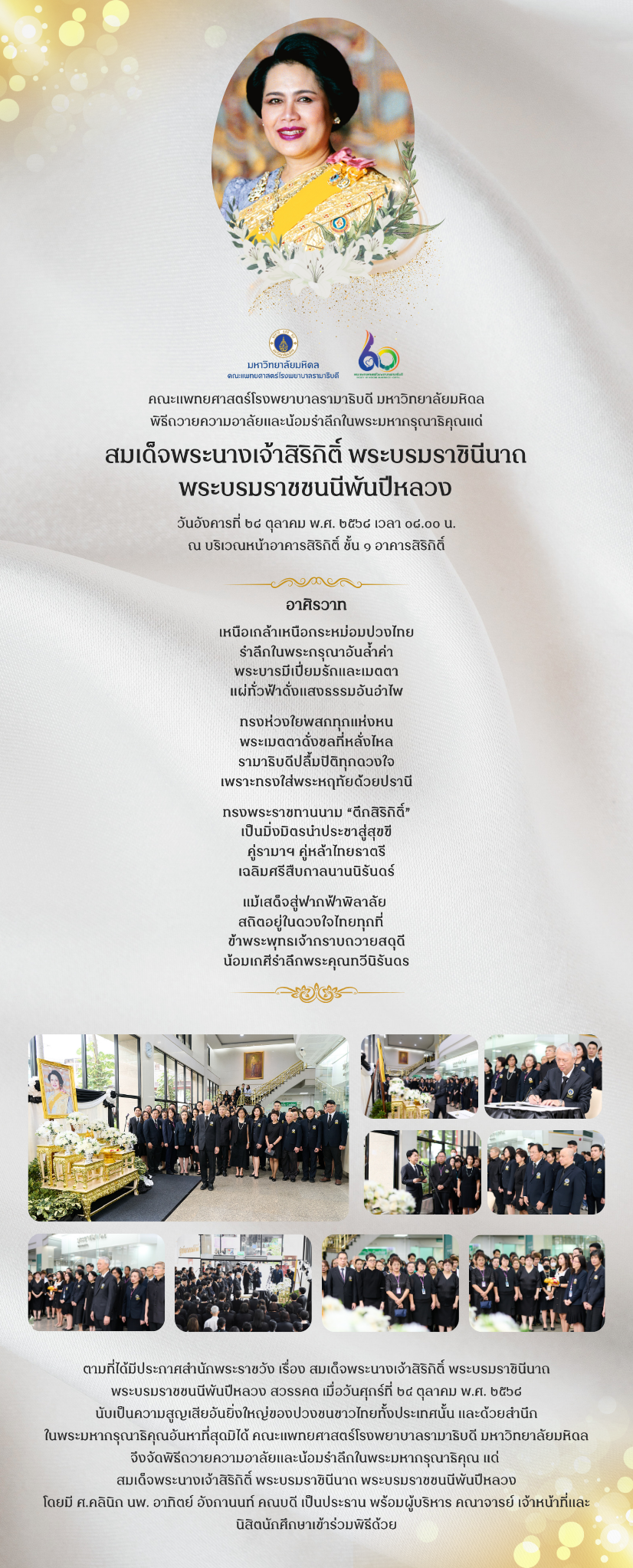 พิธีถวายความอาลัยและน้อมรำลึกในพระมหากรุณาธิคุณแด่ สมเด็จพระนางเจ้าสิริกิติ์ พระบรมราชินีนาถ พระบรมราชชนนีพันปีหลวง