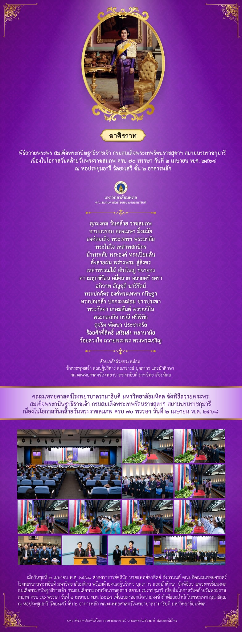 พิธีถวายพระพร สมเด็จพระกนิษฐาธิราชเจ้า กรมสมเด็จพระเทพรัตนราชสุดาฯ สยามบรมราชกุมารี