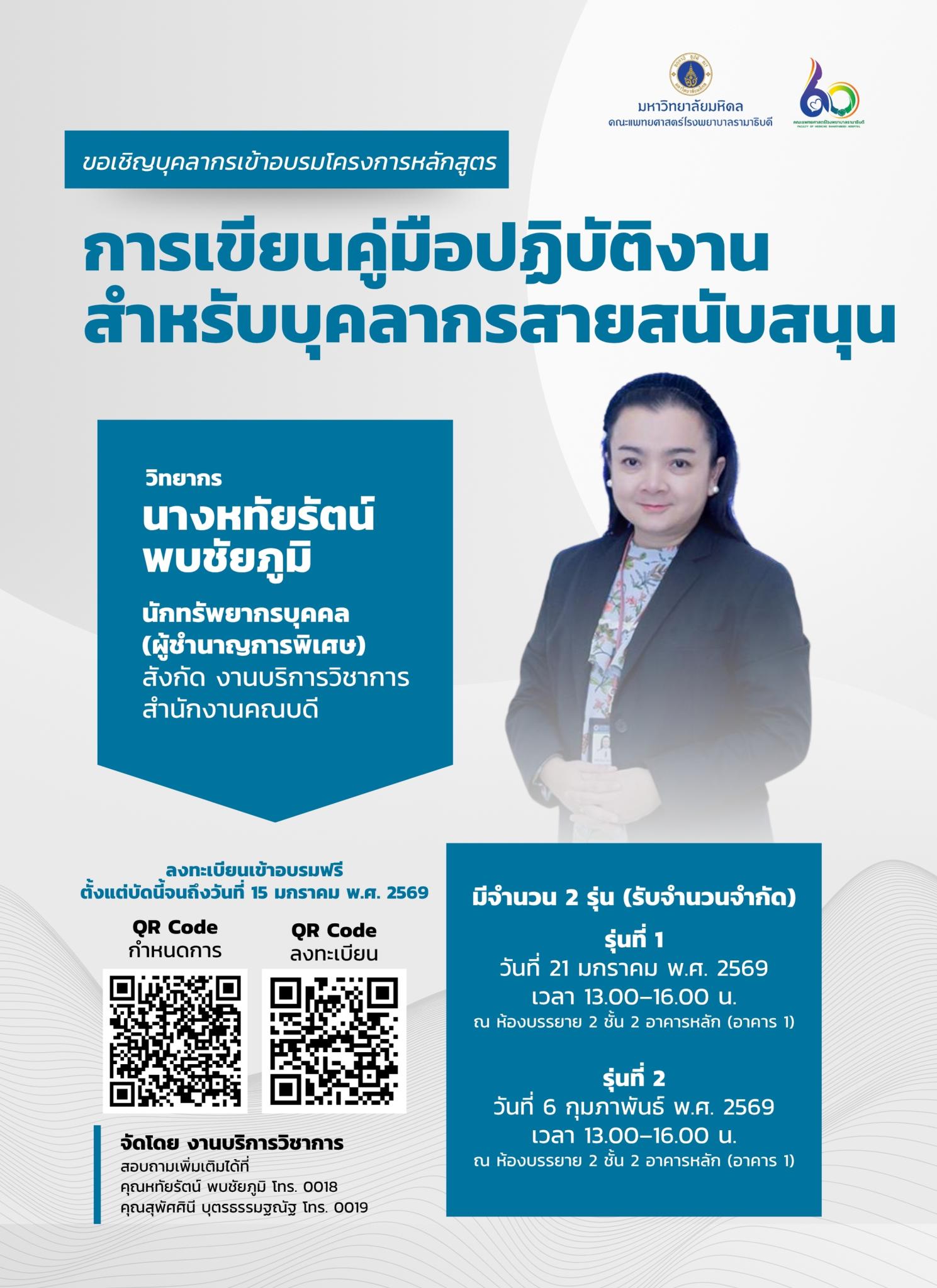 วันที่อบรม : วันพุธที่ 21 มกราคม พ.ศ. 2569