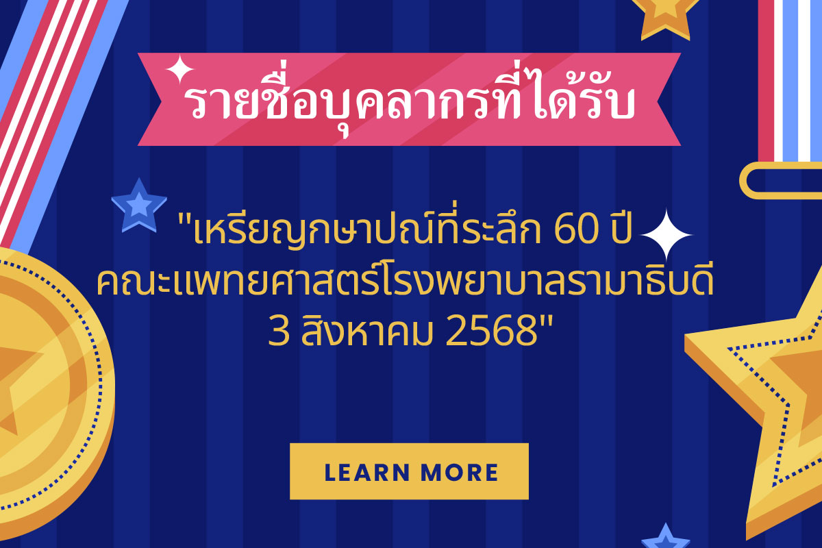 รายชื่อบุคลากรที่ได้รับ "เหรียญกษาปณ์ที่ระลึก 60 ปี คณะแพทยศาสตร์โรงพยาบาลรามาธิบดี 3 สิงหาคม 2568"
