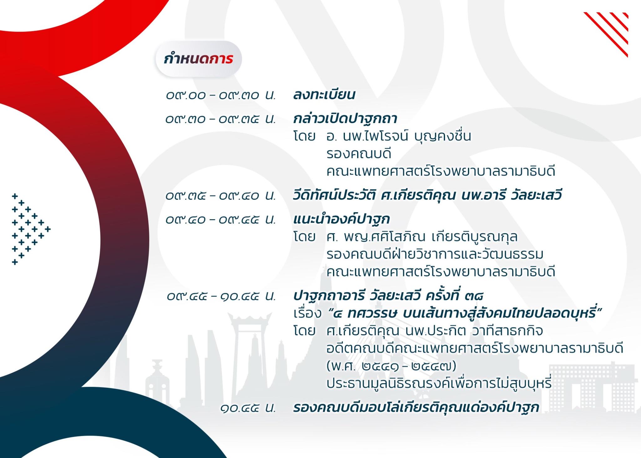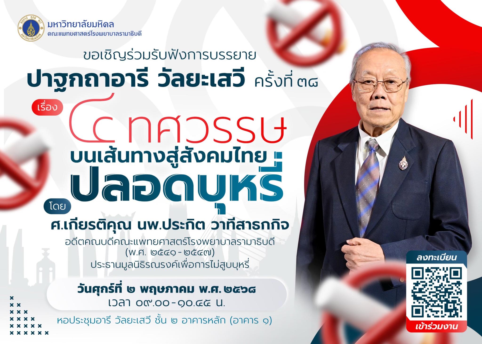 ปาฐกถาอารี วัลยะเสวี ครั้งที่ 38 เรื่อง “4 ทศวรรษ บนเส้นทางสู่สังคมไทยปลอดบุหรี่”