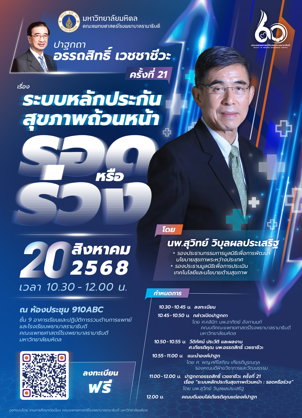 งานปาฐกถาอรรถสิทธิ์ เวชชาชีวะ ครั้งที่ 21 เรื่อง “ระบบหลักประกันสุขภาพถ้วนหน้า : รอดหรือร่วง”