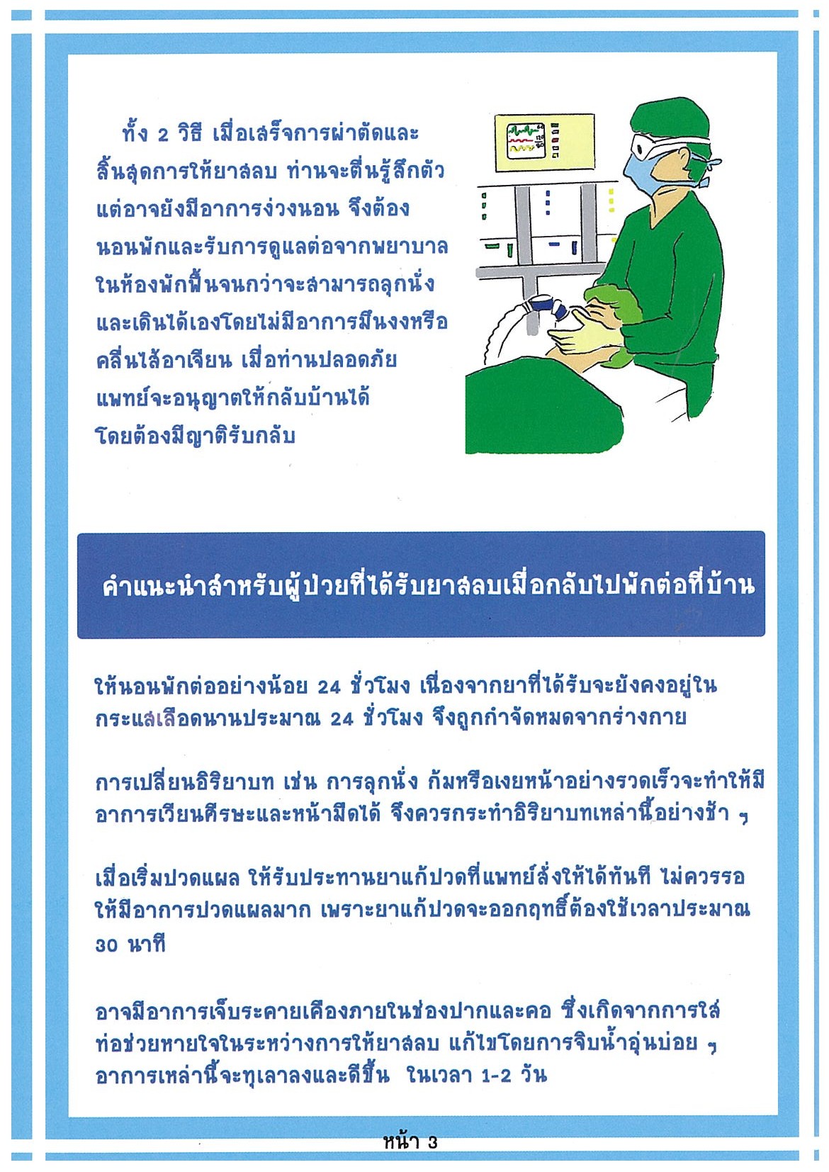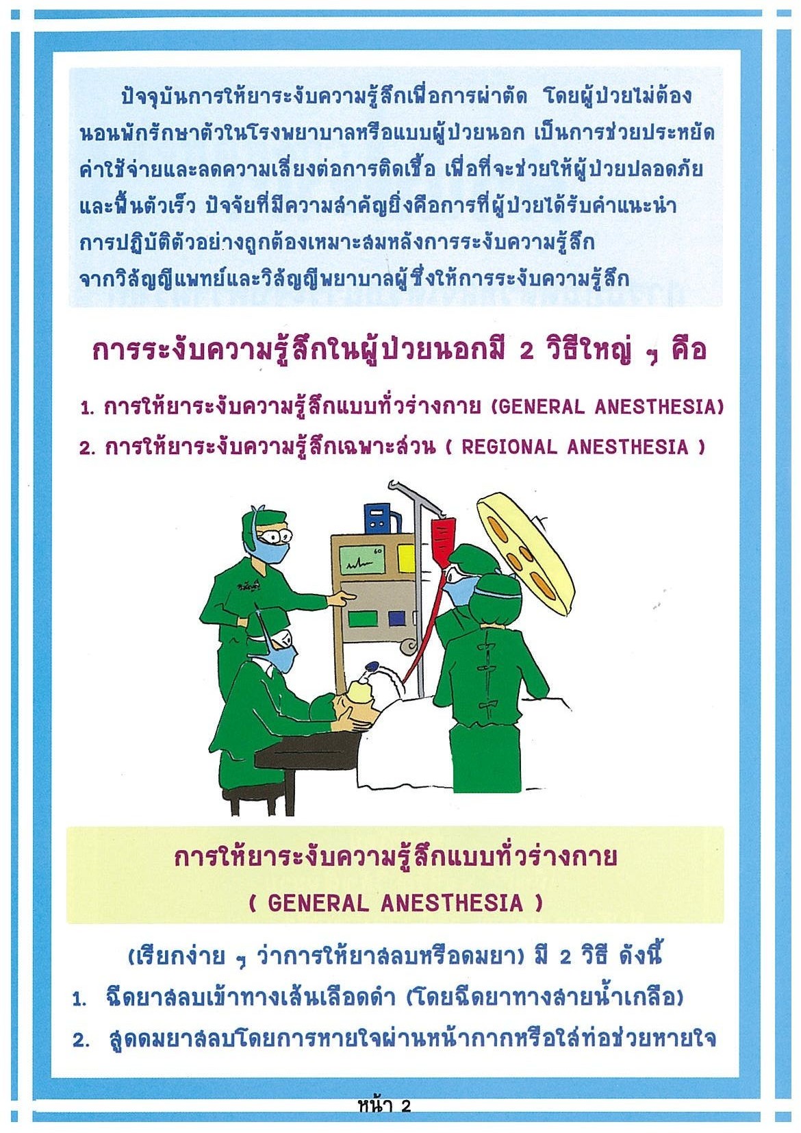 เมื่อเข้ารับยาระงับความรู้สึก จัดทำโดย: ภาควิชาวิสัญญีวิทยา