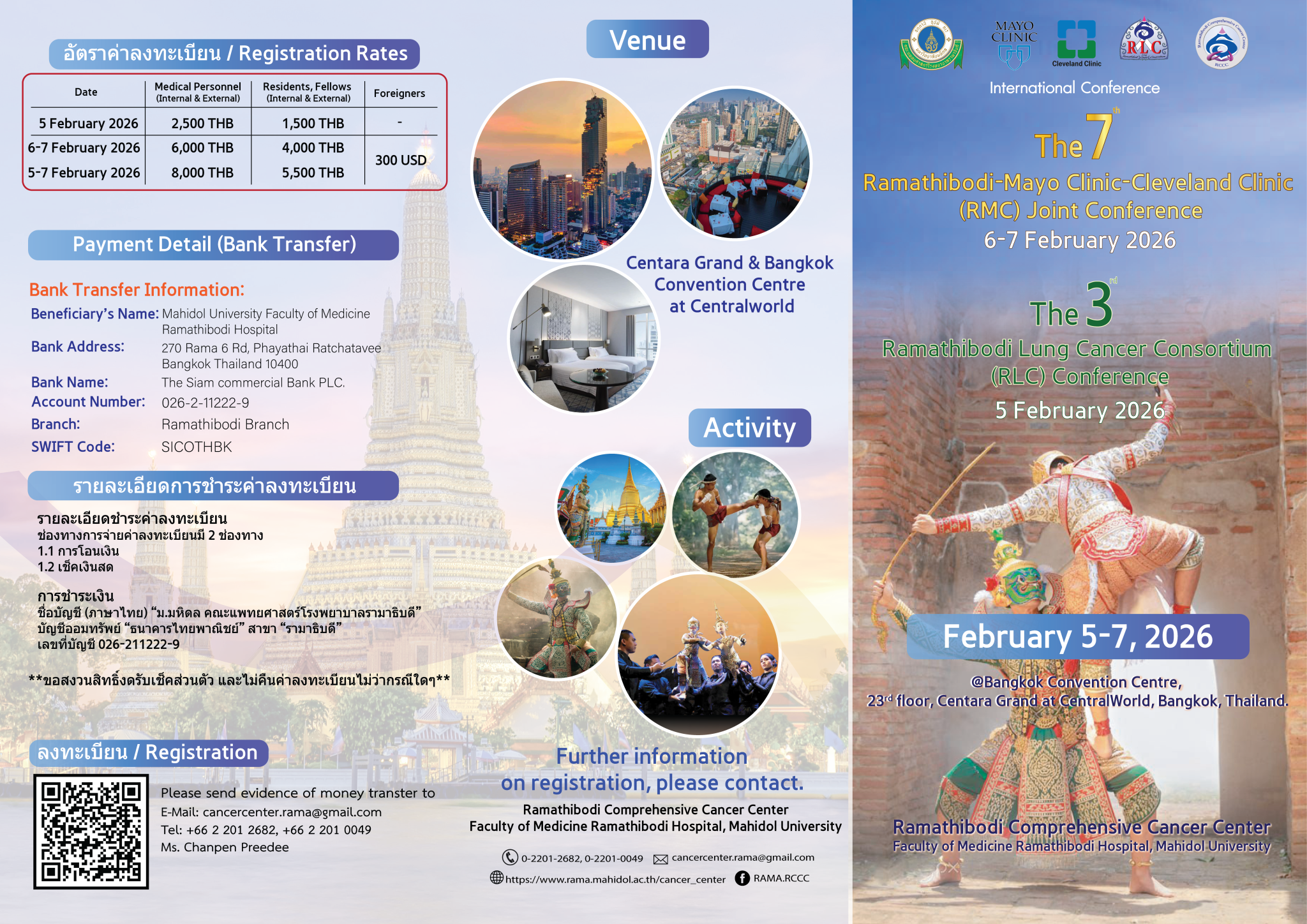 หน้าแรก โปสเตอร์งานประชุม Brochure กำหนดการงานประชุม อัตราค่าลงทะเบียน โครงการงานประชุม หนังสือเชิญประชุมโดยไม่ถือเป็นวันลา เอกสารประกอบการประชุม แบบประเมินความพึงพอใจ ตรวจสอบรายชื่อลงทะเบียน Brochure Download