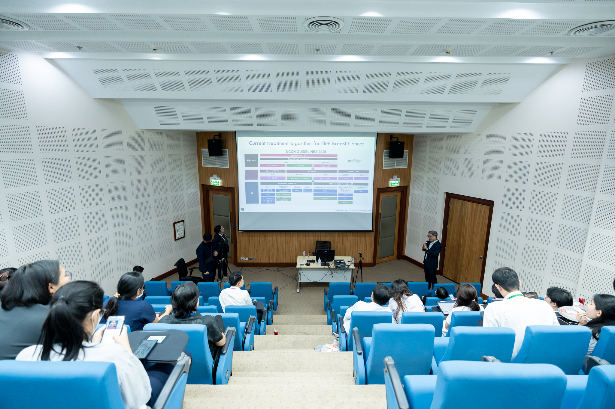 📌หัวข้อเรื่อง ESMO Breakthrough: The Evolving Treatment Landscape in Breast Cancer Care โดยมี อ. นพ.ธัช อธิวิทวัส สาขามะเร็งวิทยา ภาควิชาอายุรศาสตร์ คณะแพทยศาสตร์โรงพยาบาลรามาธิบดี มหาวิทยาลัยมหิดล กล่าวเปิดงาน ซึ่งได้รับเกียรติจาก Prof. Elgene Lim, M.D. Medical Oncology Unit St Vincent's Hospital เป็นวิทยากรในการบรรยายในครั้งนี้