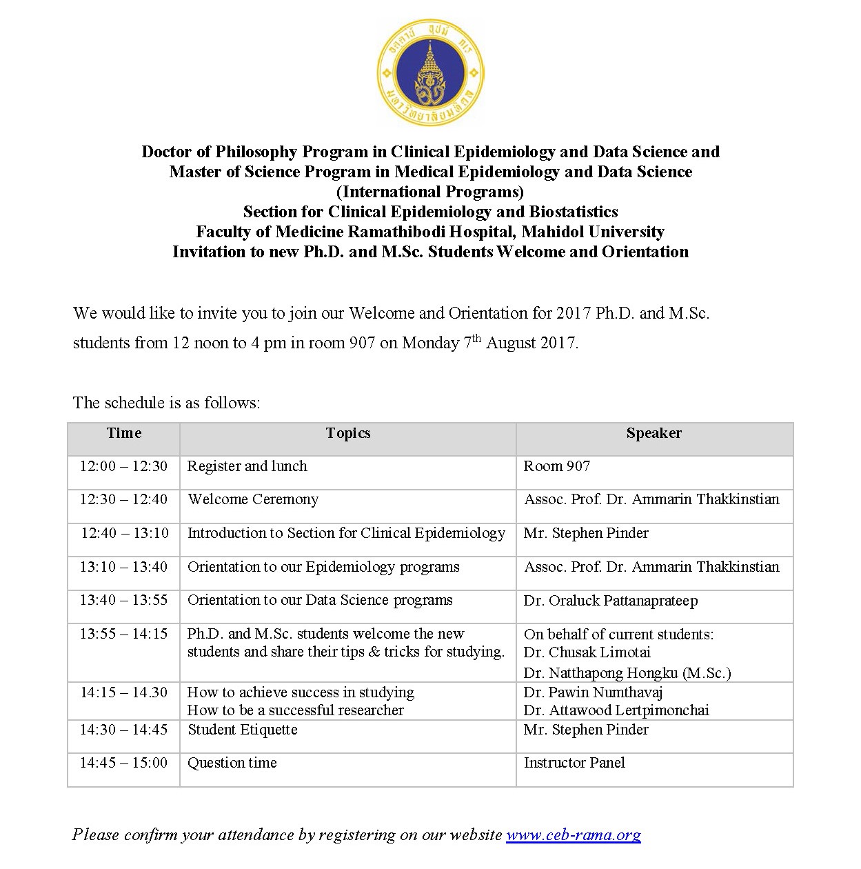 Welcome and Orientation for 2017