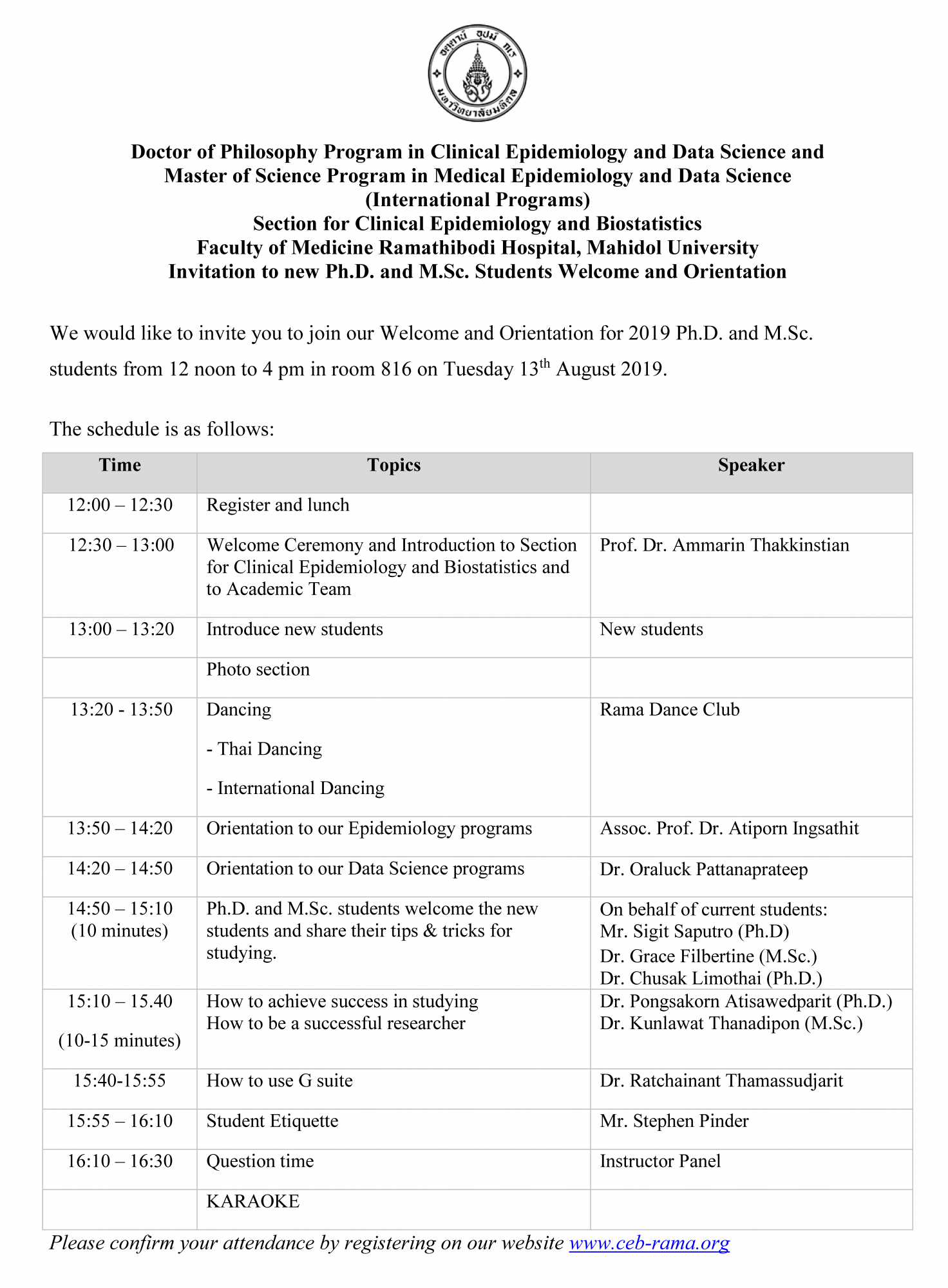 Welcome and Orientation 2019