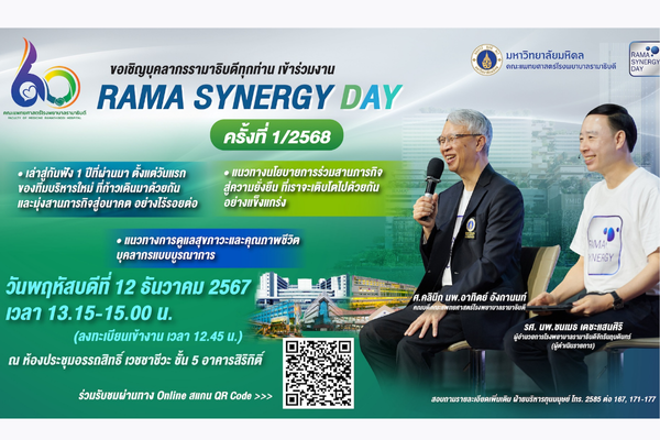 ขอเชิญบุคลากรรามาธิบดีทุกท่าน เข้าร่วมงาน RAMA SYNERGY DAY ครั้งที่ 1/2568