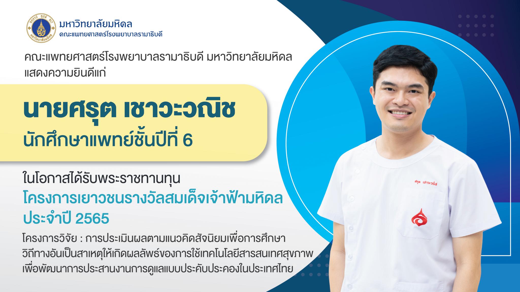 แสดงความยินดี นายศรุต เชาวะวณิช นักศึกษาแพทย์ชั้นปีที่ 6