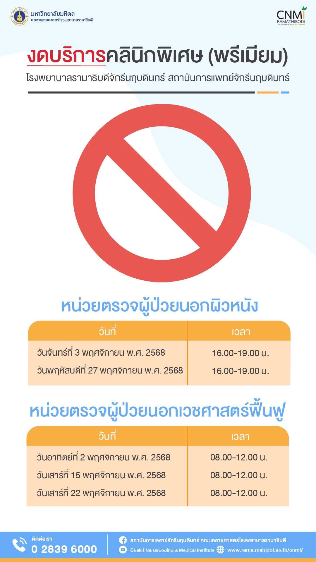 ประกาศวันหยุดคลินิกในและนอกเวลาราชการ ประจำปี 2568