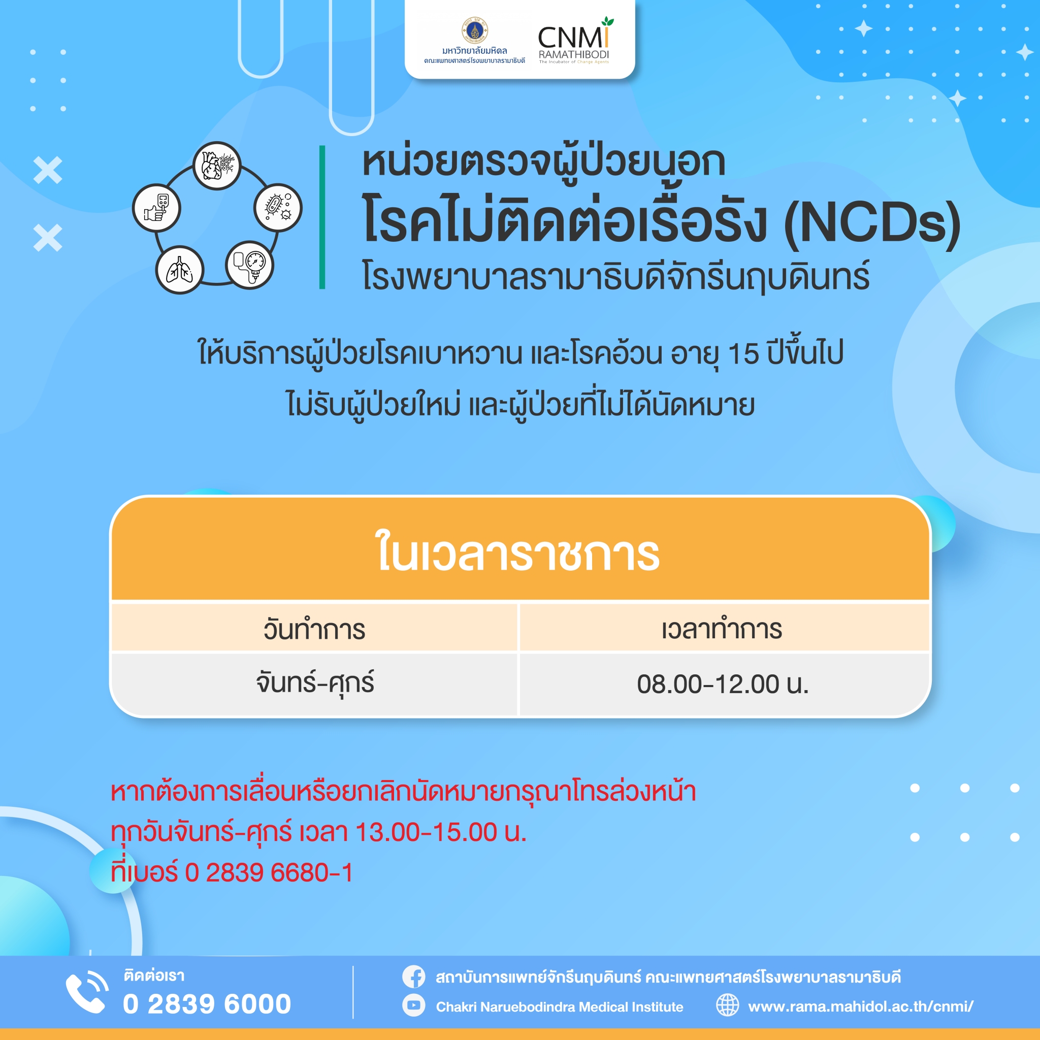 สอบถามรายละเอียดการเข้ารับบริการที่ หน่วยตรวจผู้ป่วยนอก โรคไม่ติดต่อเรื้อรัง