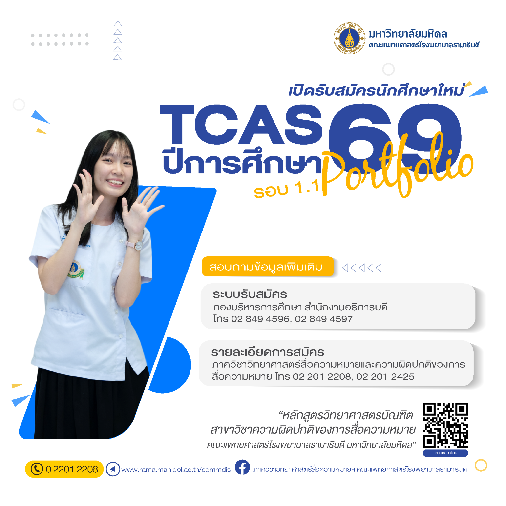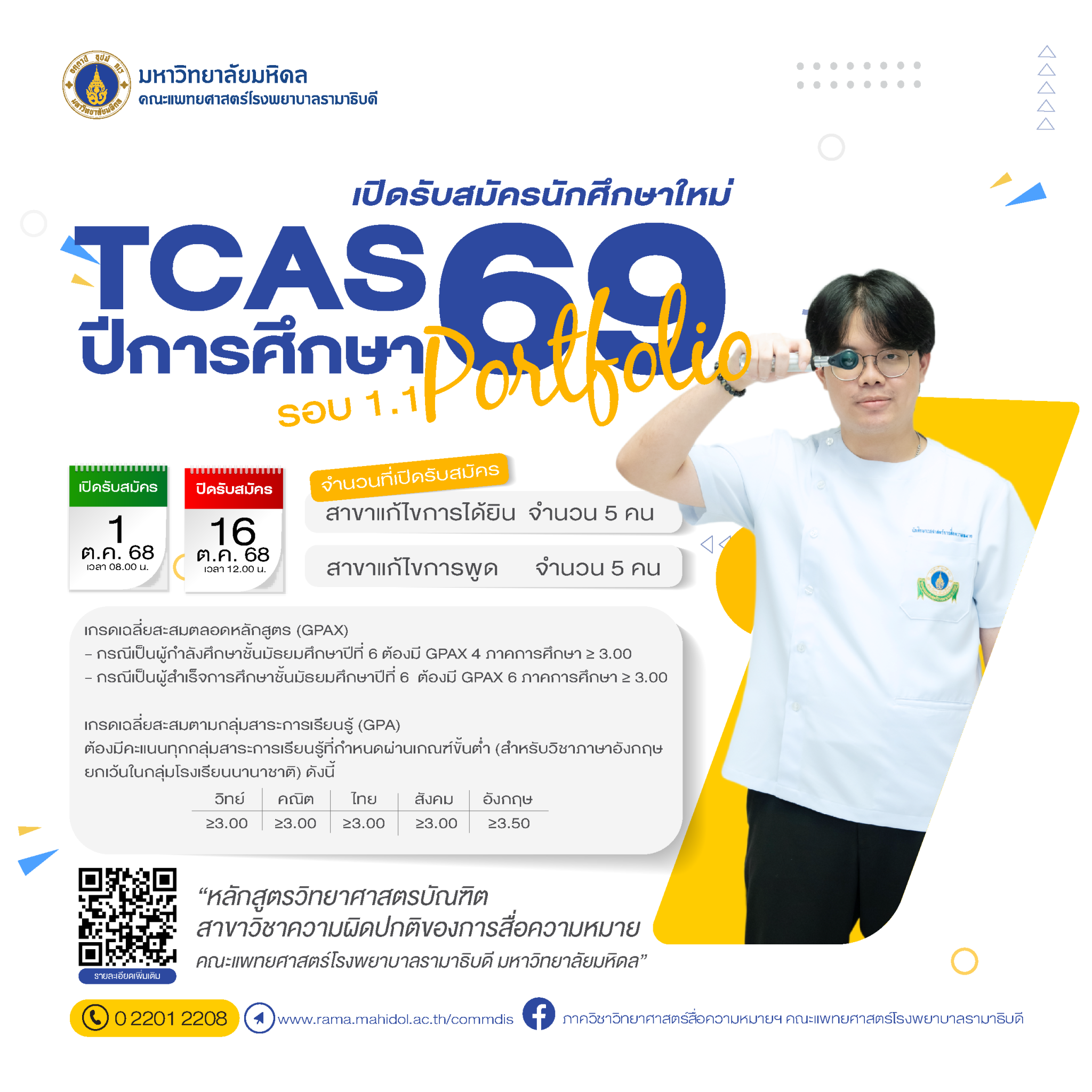 หลักสูตรวิทยาศาสตรบัณฑิต สาขาวิชาความผิดปกติของการสื่อความหมาย สำหรับ TCAS67 รอบที่ 1/1 แฟ้มสะสมผลงาน (Portfolio)