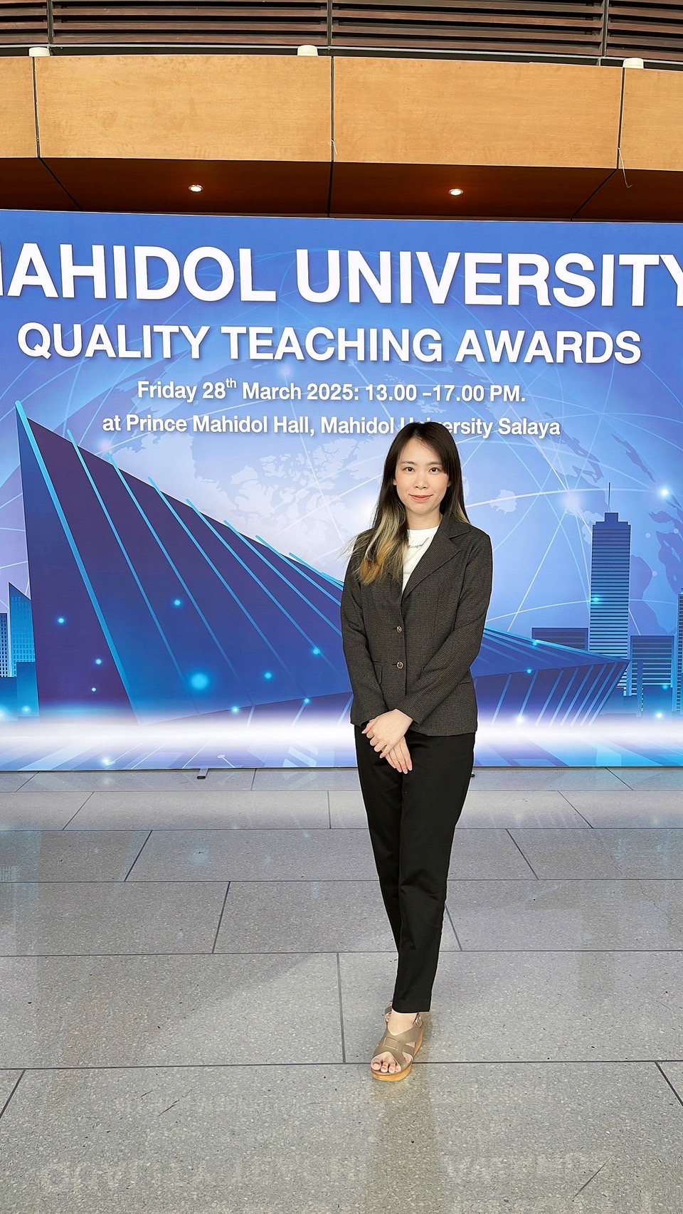 ขอแสดงความยินดีกับ อาจารย์ ดร.วรรษิญา กมลสิทธิชัย อาจารย์ประจำสาขาแก้ไขด้านการพูด ภาควิชาวิทยาศาสตร์สื่อความหมายและความผิดปกติของการสื่อความหมาย คณะแพทยศาสตร์โรงพยาบาลรามาธิบดี มหาวิทยาลัยมหิดล ในโอกาสเข้ารับมอบประกาศนียบัตรให้แก่ผู้ได้รับการประเมินระดับคุณภาพการจัดการเรียนการสอนตามเกณฑ์มาตรฐานคุณภาพ มหาวิทยาลัยมหิดล (Mahidol University Professional Standards Framework : MUPSF) เมื่อวันศุกร์ที่ 28 มีนาคม พ.ศ. 2568 ณ โถงรับรอง Foyer หอประชุมมหิดลสิทธาคาร มหาวิทยาลัยมหิดล ศาลายา