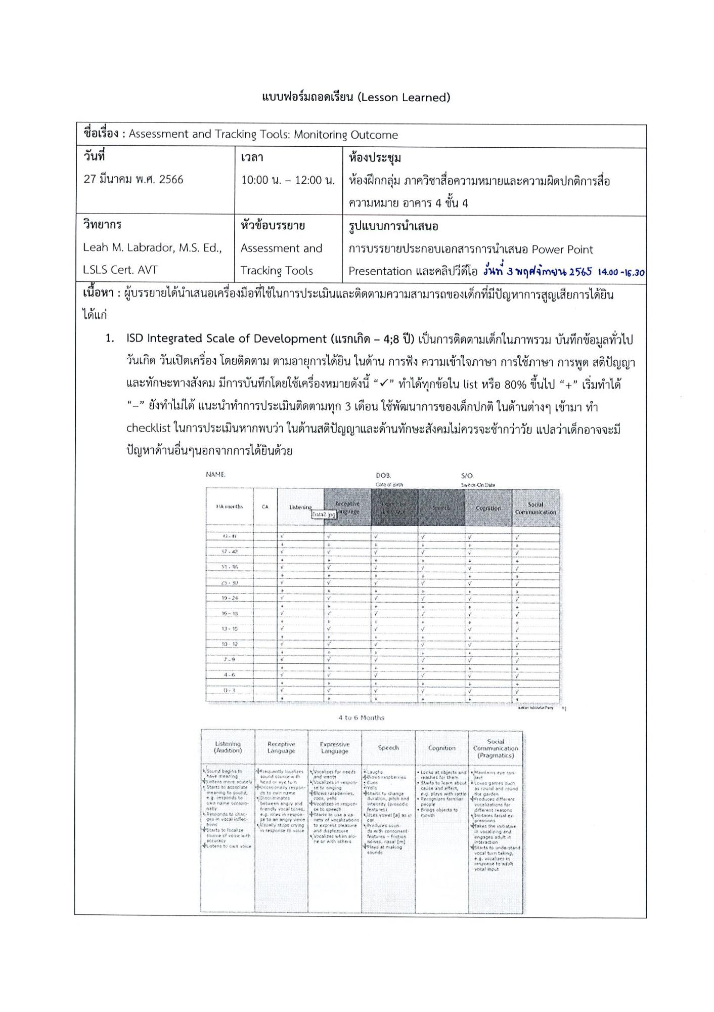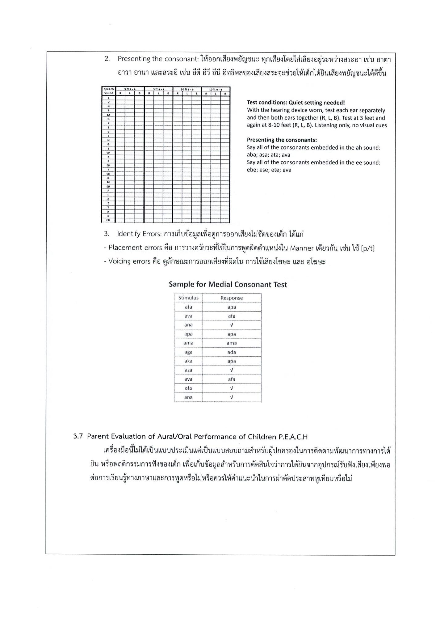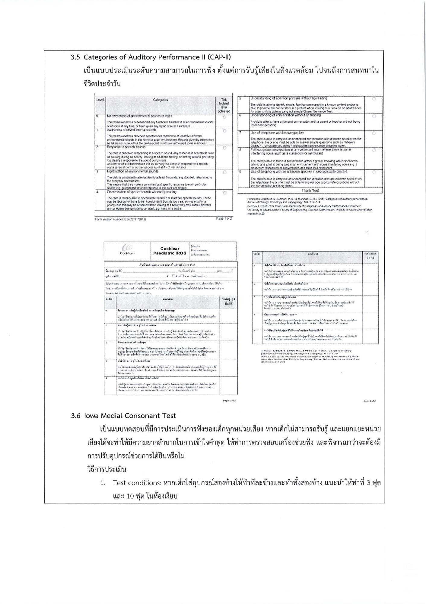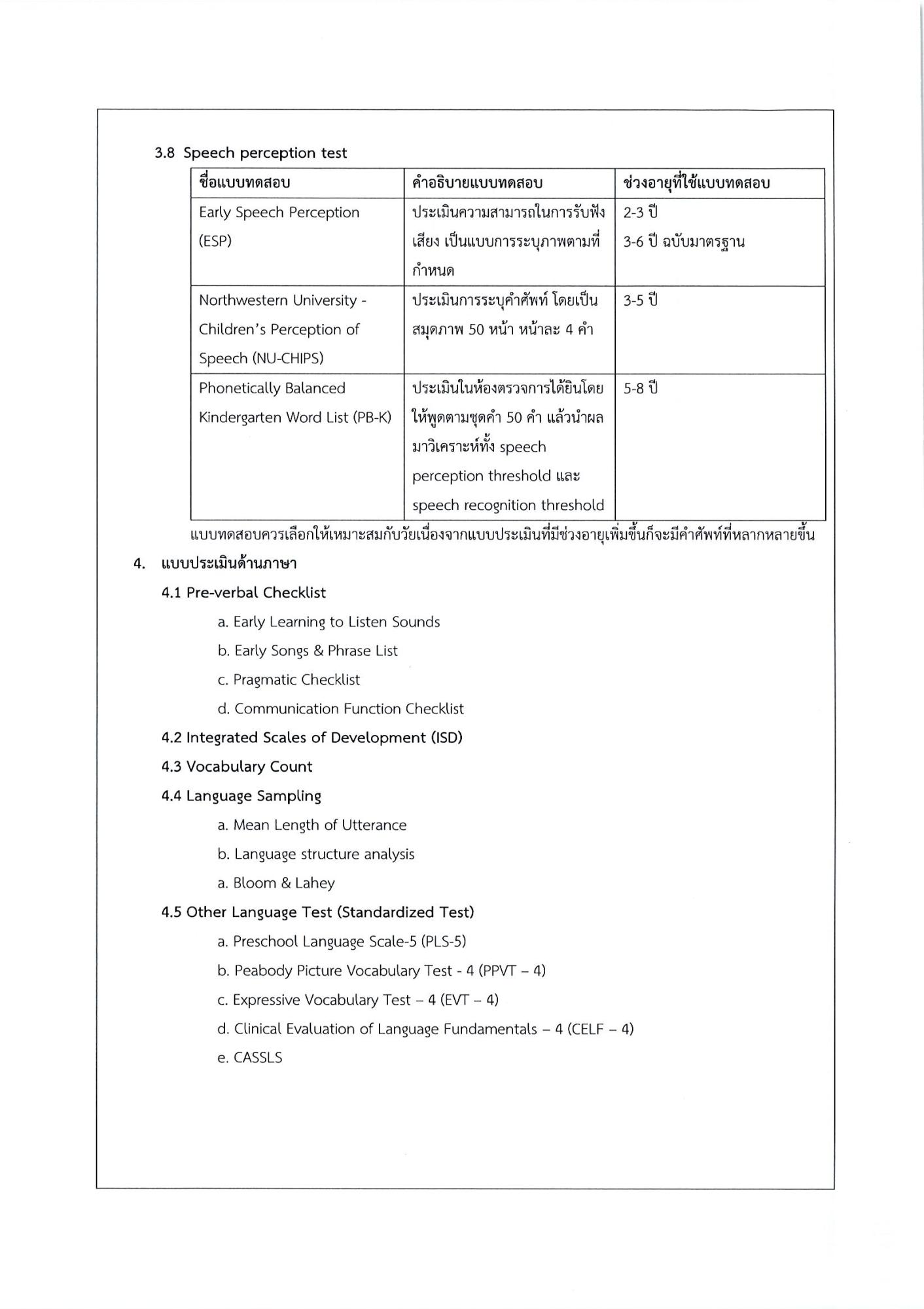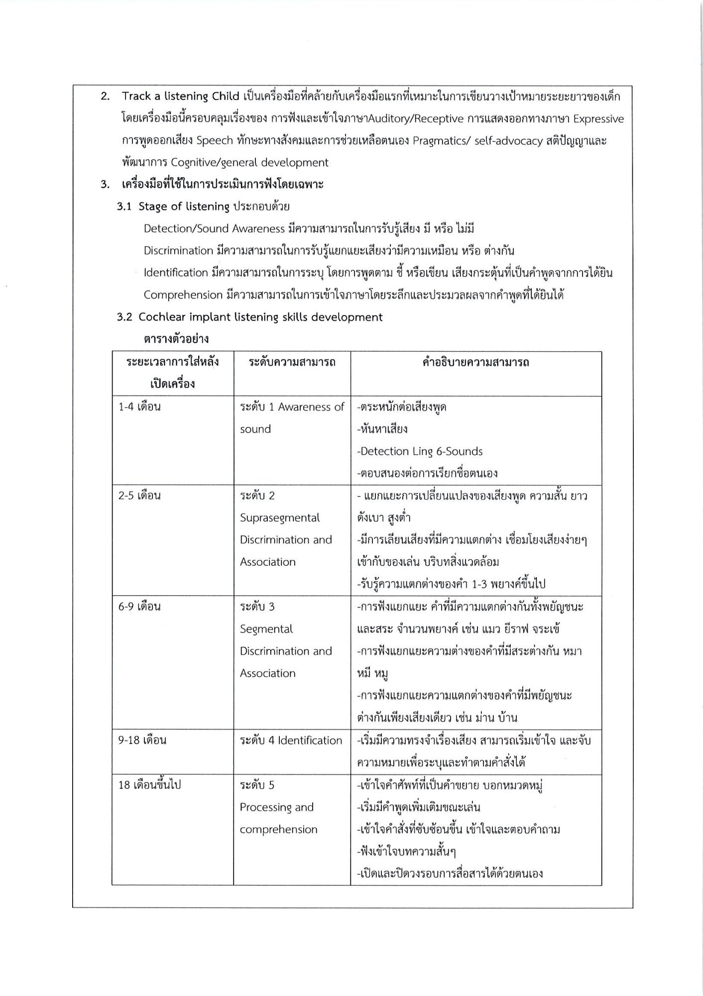 เครื่องมือที่ใช้ในการประเมินและติดตามความสามารถของเด็กที่มีปัญหาการสูญเสียการได้ยิน มีดังนี้