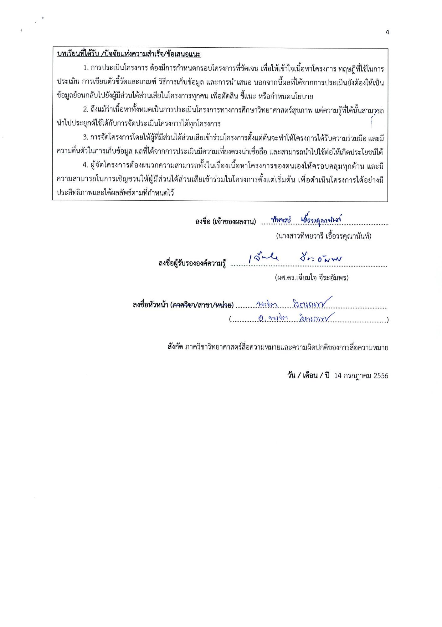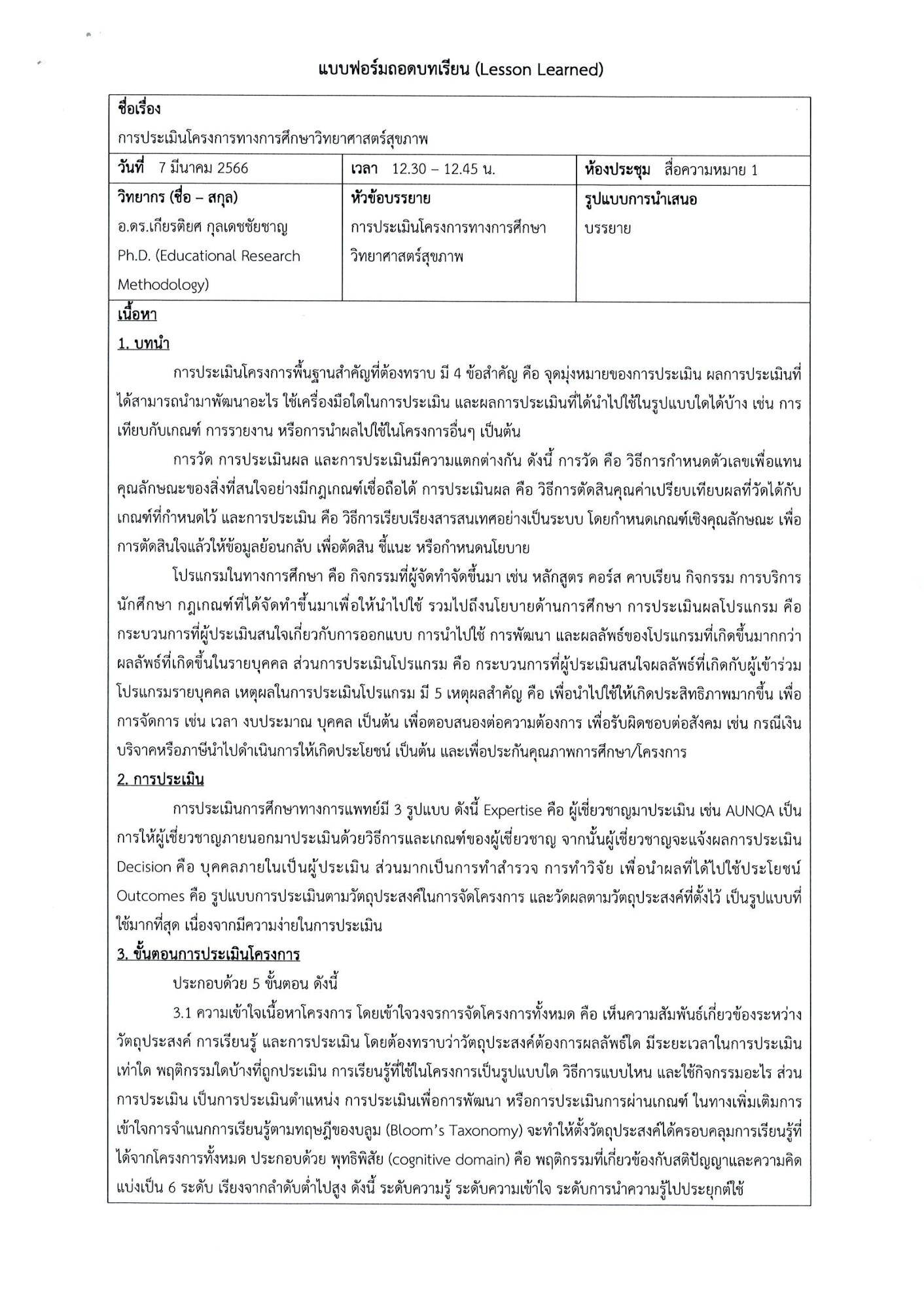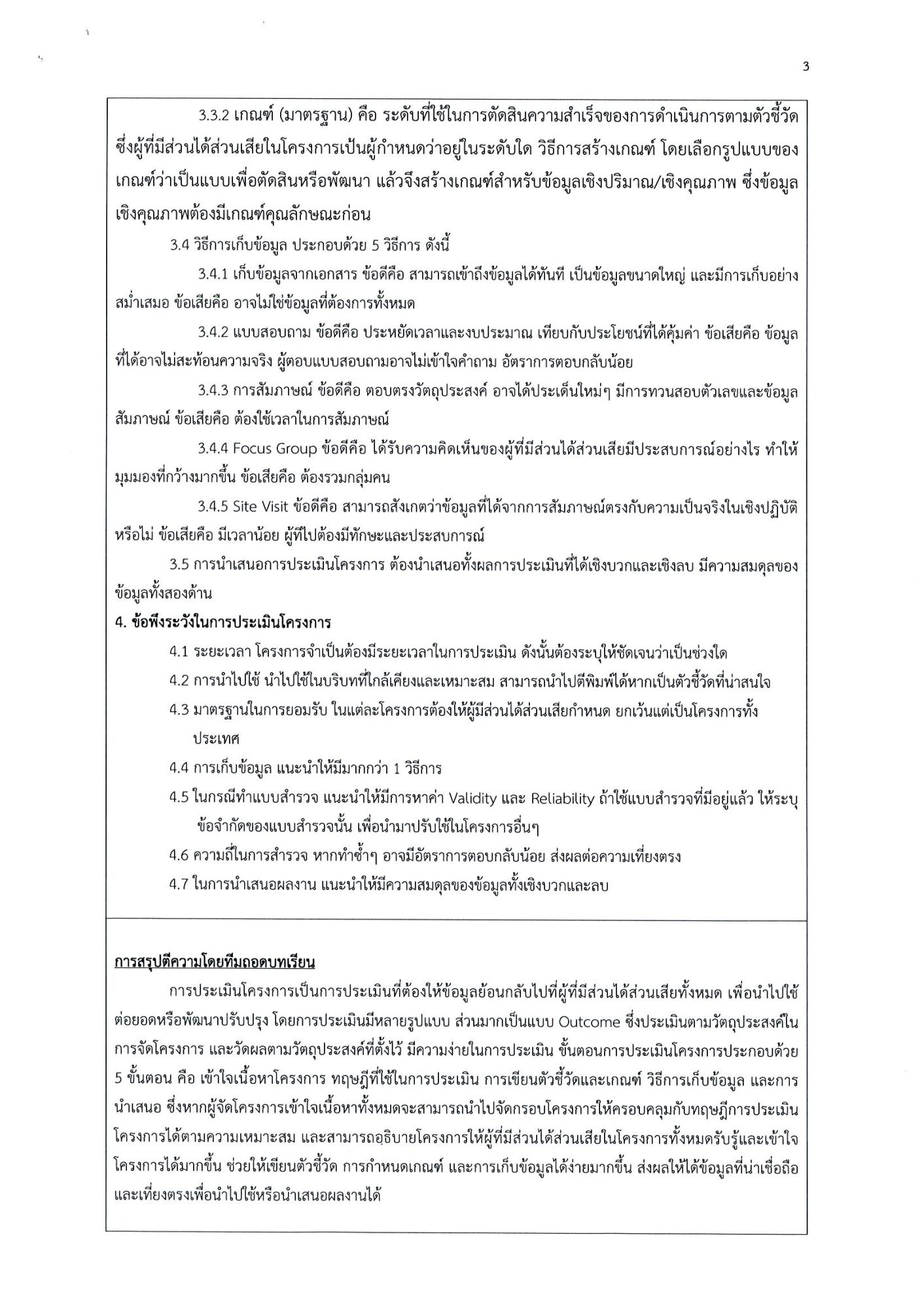 การจัดทำโครงการต่างๆ ควรศึกษาประเมินโครงการ เพื่อนำผลที่ได้จากโครงการนั้นไปใช้ต่อได้ในอนาคต