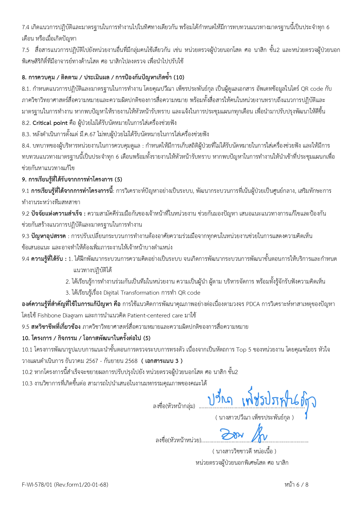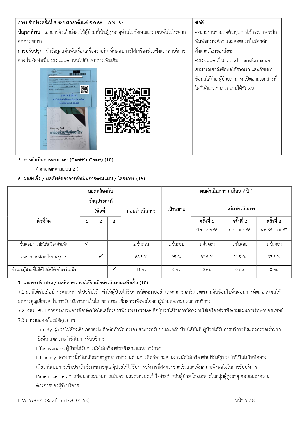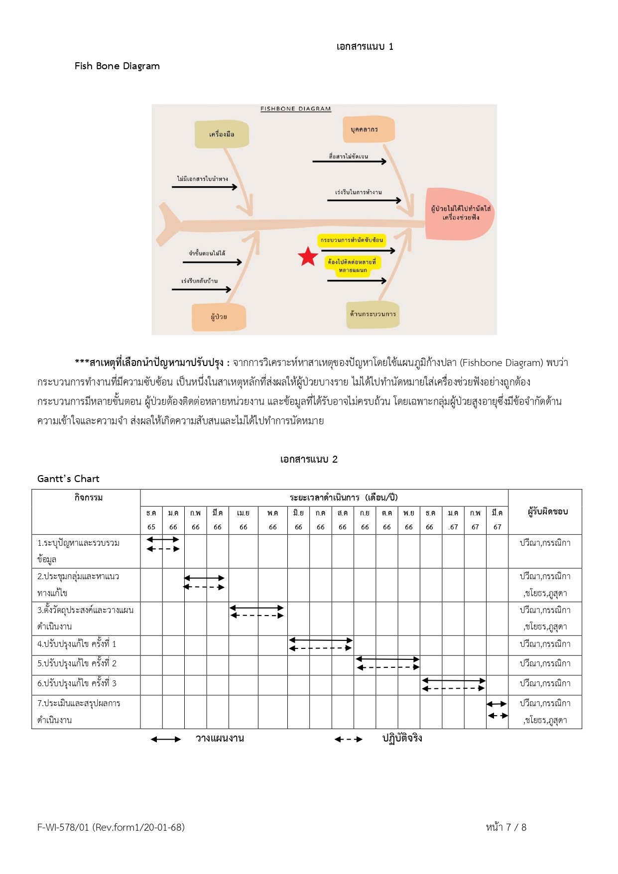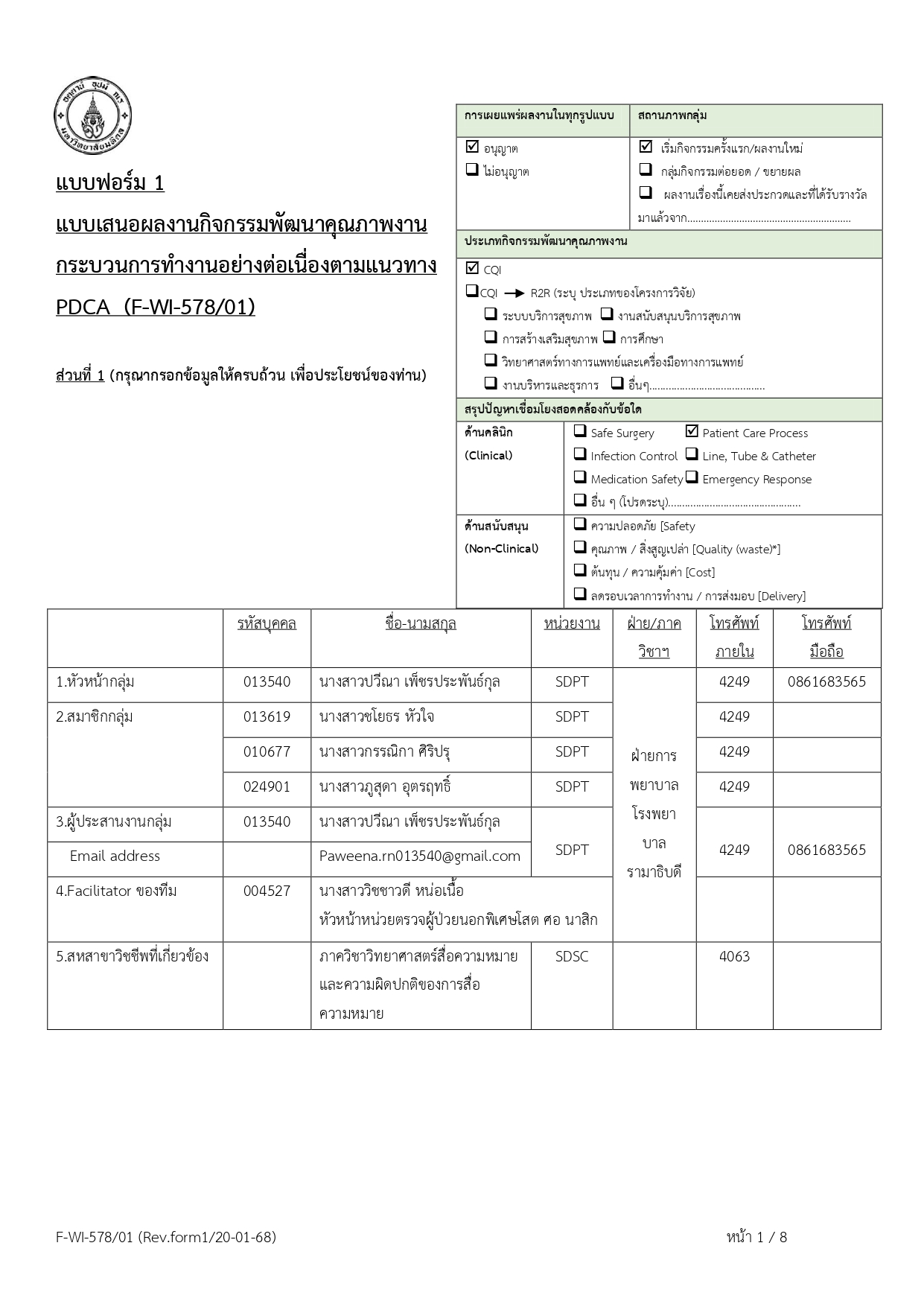 แบบเสนอผลงานกิจกรรมพัฒนาคุณภาพงาน กระบวนการทางานอย่างต่อเนื่องตามแนวทาง PDCA (F-WI-578/01)