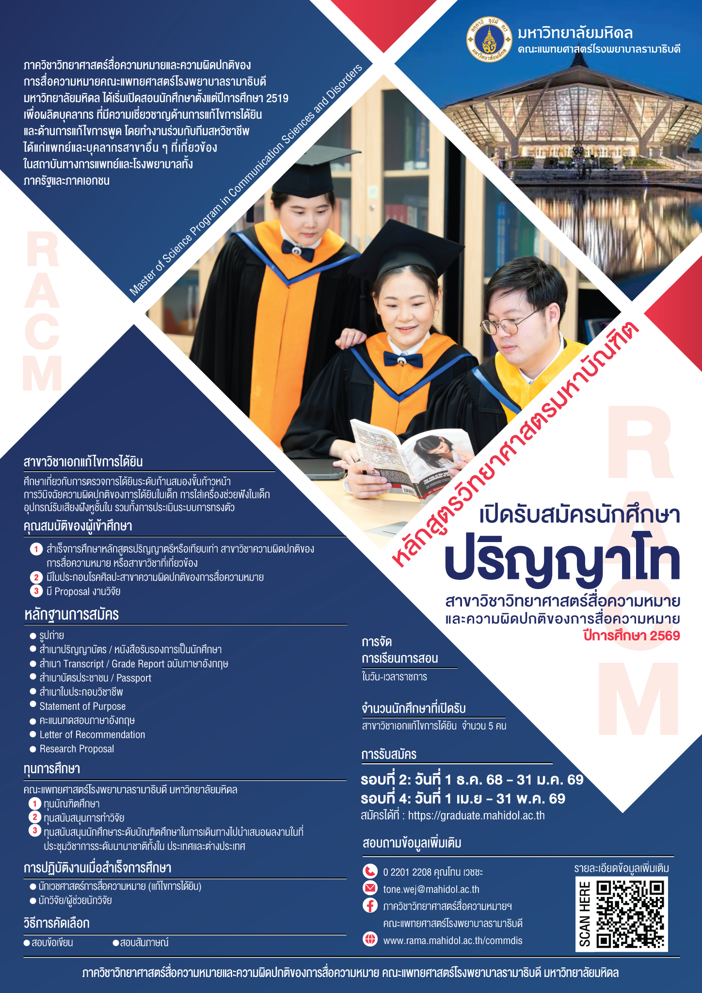 เปิดรับสมัครนักศึกษาปริญญาโท ปีการศึกษา 2569