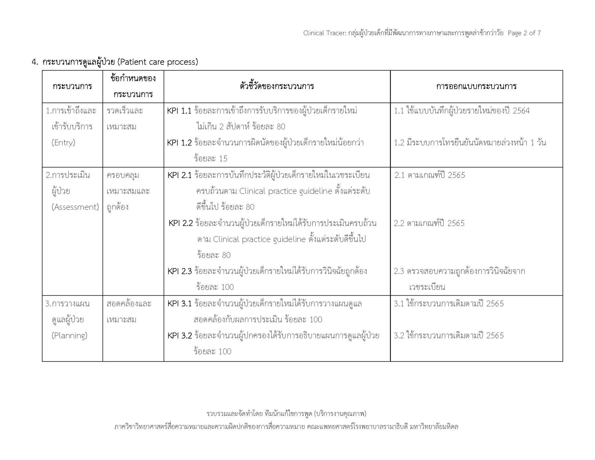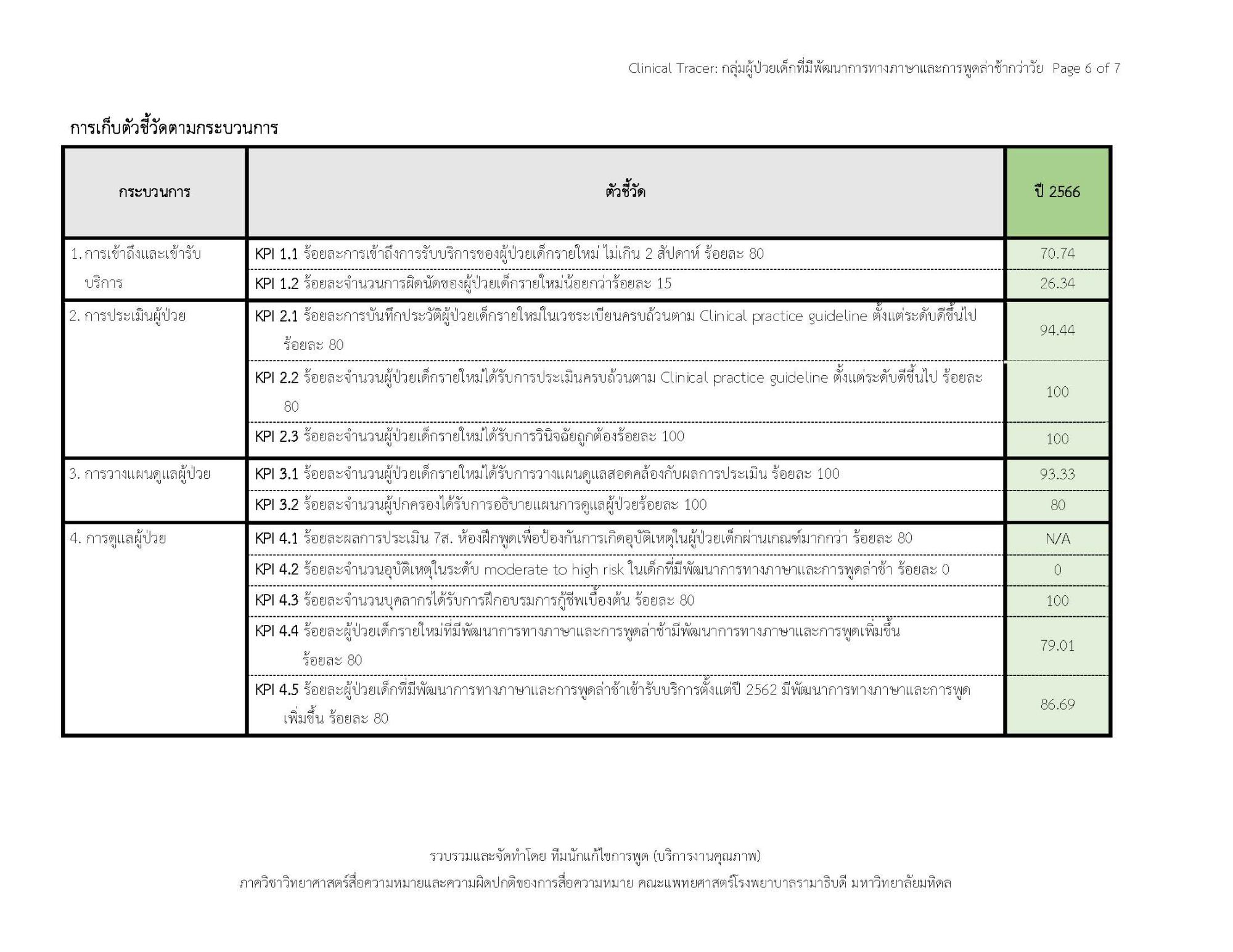 Clinical Tracer: กลุ่มผู้ป่วยเด็กที่มีพัฒนาการทางภาษาและการพูดล่าช้ากว่าวัย ปีพ.ศ.2566 (ช่วงปรับปรุง)