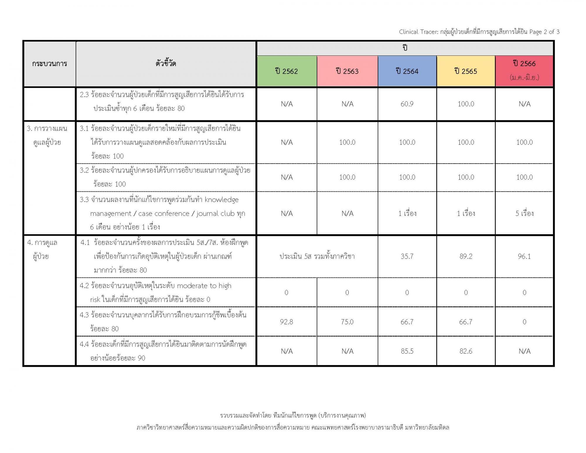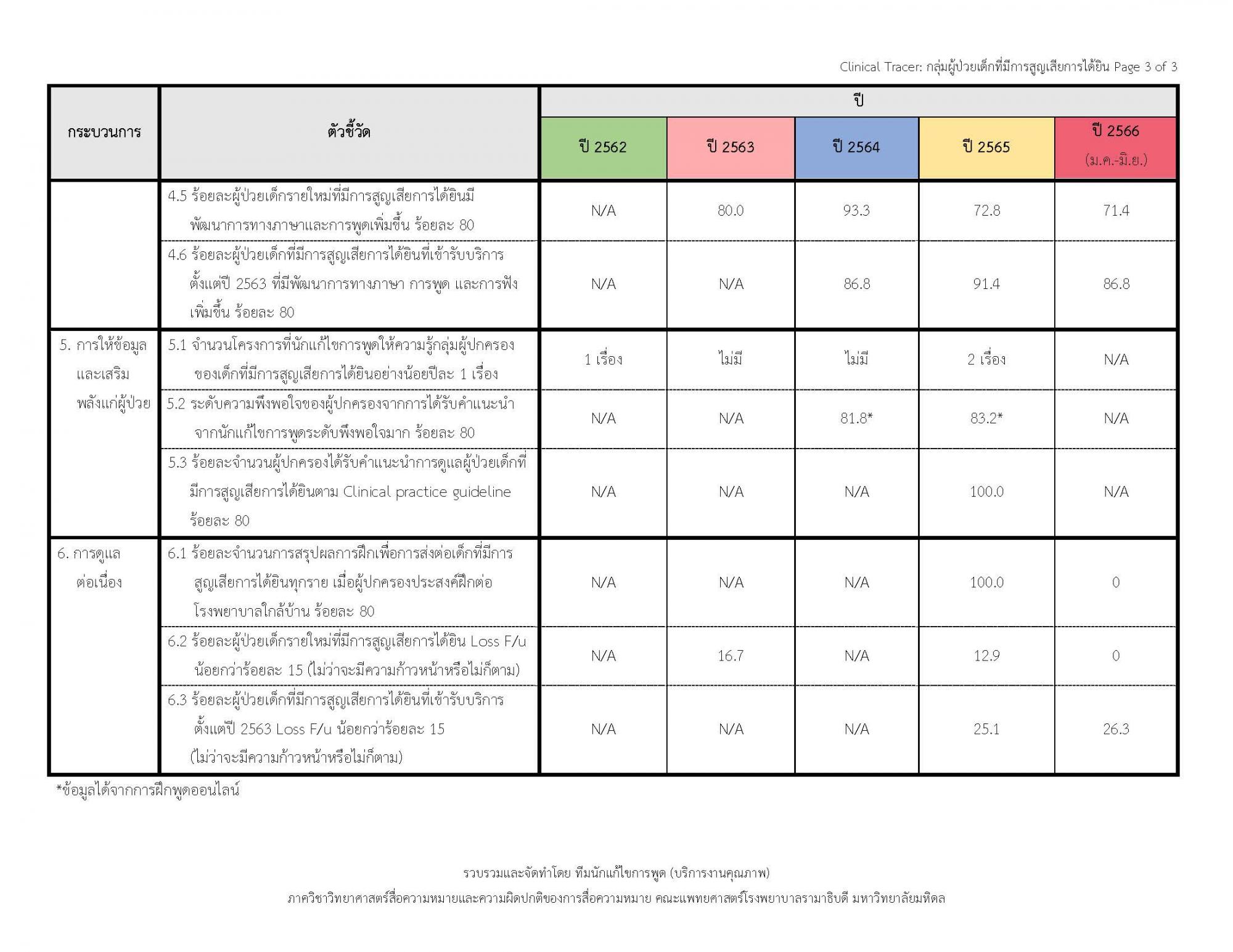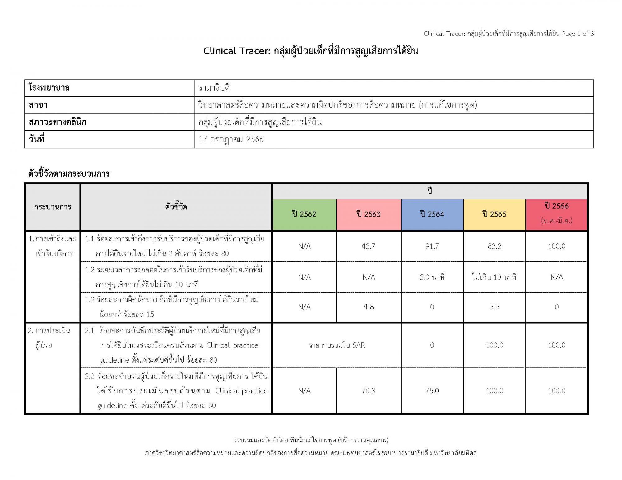 สรุปผลดำเนินงาน Clinical tracer กลุ่มผู้ป่วยเด็กที่มีการสูญเสียการได้ยิน พ.ศ.2562 ถึง มิถุนายน พ.ศ.2566