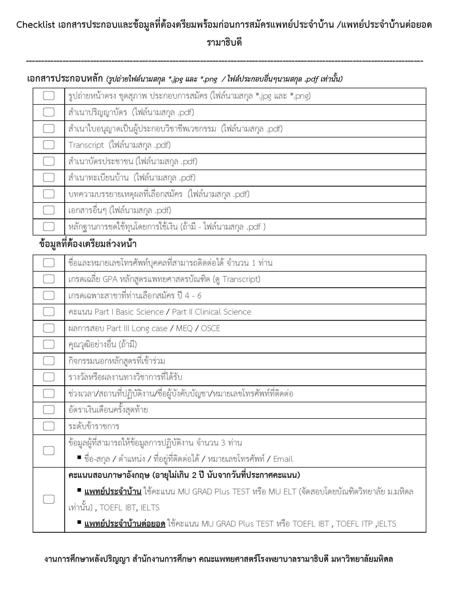 **ดาวน์โหลด Check list เอกสารและหลักฐานประกอบการสมัคร **