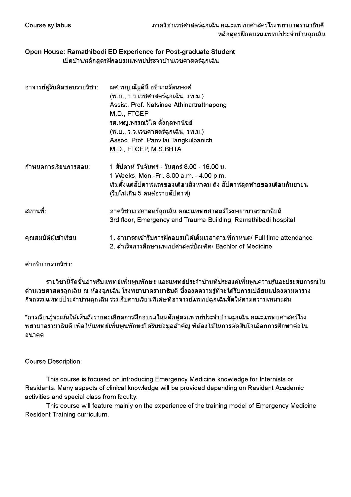 หลักสูตรแพทย์ประจำบ้านต่อยอด อนุสาขาเวชศาสตร์ฉุกเฉินนอกโรงพยาบาล