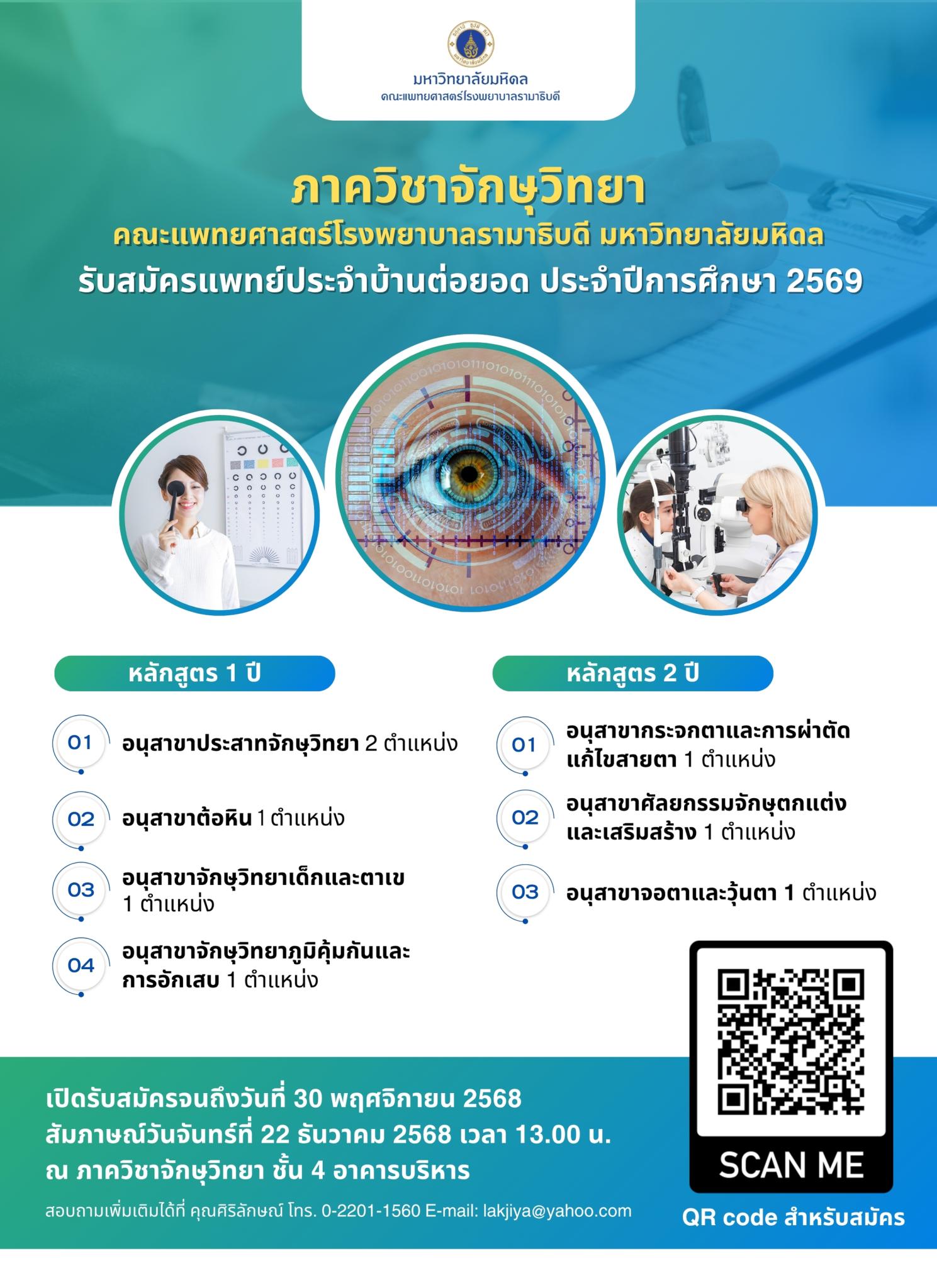การสมัครแพทย์ประจำบ้าน (Prospective Ophthalmology Resident)