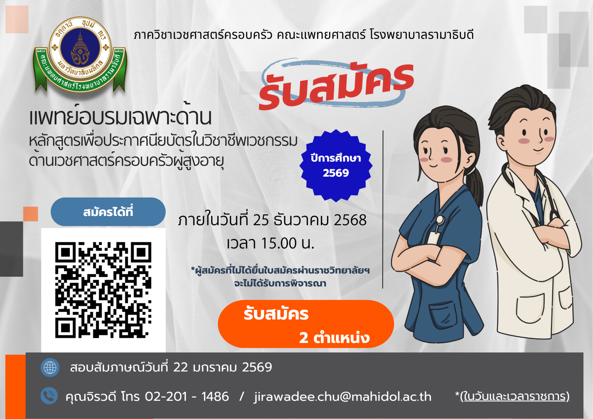 หลักสูตรการฝึกอบรม อนุสาขาเวชศาสตร์ประคับประคอง คณะแพทยศาสตร์โรงพยาบาลรามาธิบดี