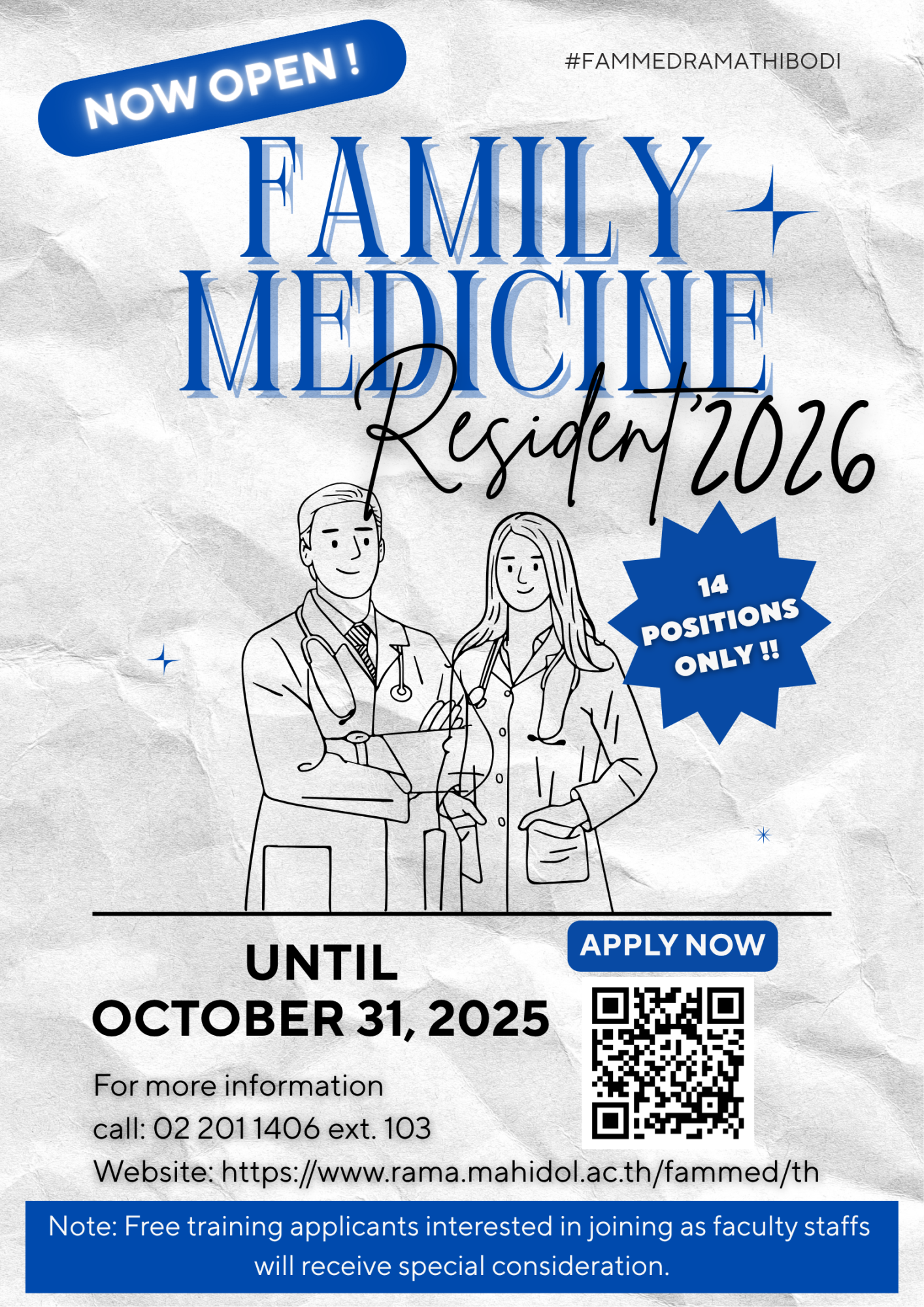 รับสมัครแพทย์ประจำบ้าน สาขาเวชศาสตร์ครอบครัว