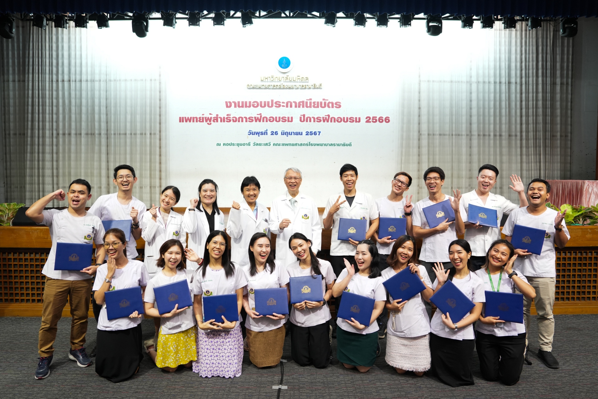 ได้รับมอบประกาศนียบัตรจาก ศ.คลินิก นพ.อาทิตย์ อังกานนท์ คณบดีคณะแพทยศาสตร์โรงพยาบาลรามาธิบดี มหาวิทยาลัยมหิดล เป็นประธานในพิธี และ กล่าวแสดงความยินดีแก่แพทย์ผู้สำเร็จการฝึกอบรมในครั้งนี้ด้วย
