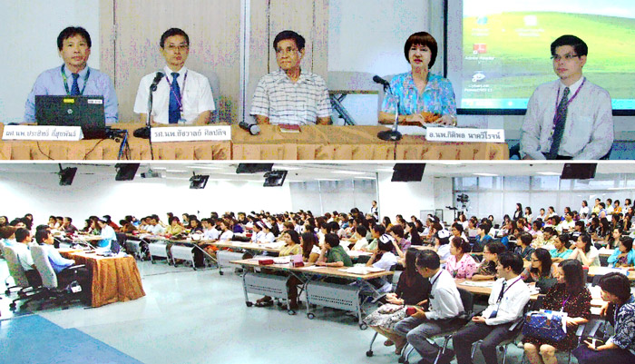 ► ผศ.นพ.ประสิทธิ์ กี่สุขพันธ์ รศ.นพ.ชัชวาลย์ ศิลปกิจ อ.นพ.กิติพล นาควิโรจน์ รวมทั้งวิทยากรรับเชิญ คือ นายจำลอง ชูเกลี้ยง ชุติธรพงษ์ และ นางสุภัครัตน์ บุญภิบาล อภิปรายเรื่อง “เปลี่ยนความคิดชีวิตเปลี่ยน” เมื่อวันที่ 2 พฤษภาคม 2556 ณ ห้อง 810 อาคารเรียนและปฎิบัติการรวมด้านการแพทย์และโรงเรียนพยาบาลรามาธิบดี ระหว่างเวลา 10.30-12.00 น. ในการประชุมวิชาการรามาธิบดี 2556
