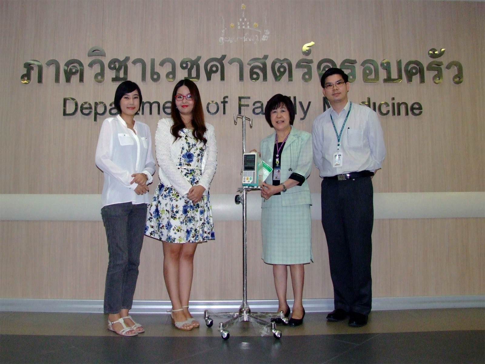 น.ส.รสวรรณ ม่วงมิ่งสุข น.ส.ปริญลดา ศรีภัทราพันธุ์ และ น.ส.ปิยะนุช เศรษฐวงศ์ ในนามกลุ่มสามสาวสู้มะเร็ง บริจาคเครื่อง Infusion pump พร้อมเสาตั้ง จำนวน 1 ชุด เพื่อใช้ในการรักษาผู้ป่วยของภาควิชาฯ โดย รศ.พญ.ปราณี พลังวชิรา หัวหน้าภาควิชาฯ และ อ.นพ.กิติพล นาควิโรจน์ เป็นผู้รับมอบ เมื่อวันที่ 16 พฤศจิกายน 2558