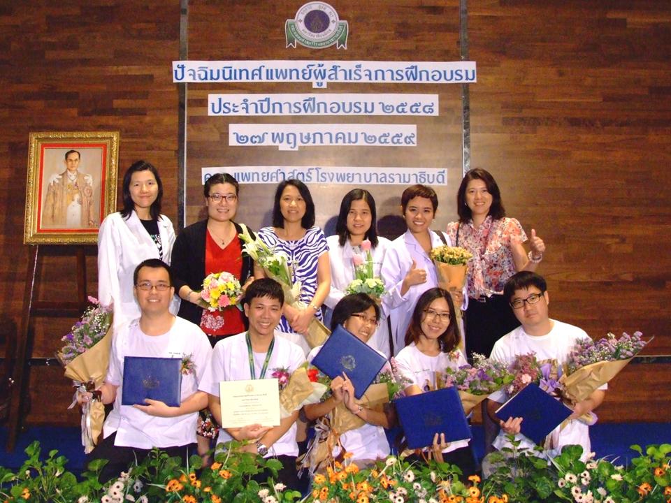 แพทย์ประจำบ้านเวชศาสตร์ครอบครัวที่สำเร็จการฝึกอบรมในปีการฝึกอบรม 2558 เข้ารับมอบประกาศนียบัตรและปัจฉิมนิเทศ เมื่อวันที่ 27 พฤษภาคม 2559 ณ ห้องประชุม 910ABC ชั้น 9 อาคารเรียนและปฏิบัติการรวมด้านการแพทย์และโรงเรียนพยาบาลรามาธิบดี