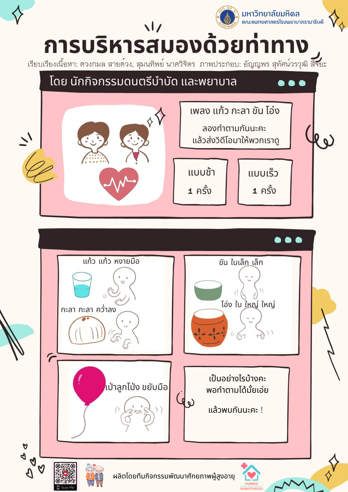 youtube channel : กิจกรรมพัฒนาศักยภาพผู้สูงอายุ โรงพยาบาลรามาธิบดี (https://youtu.be/v690C-W_k7U)