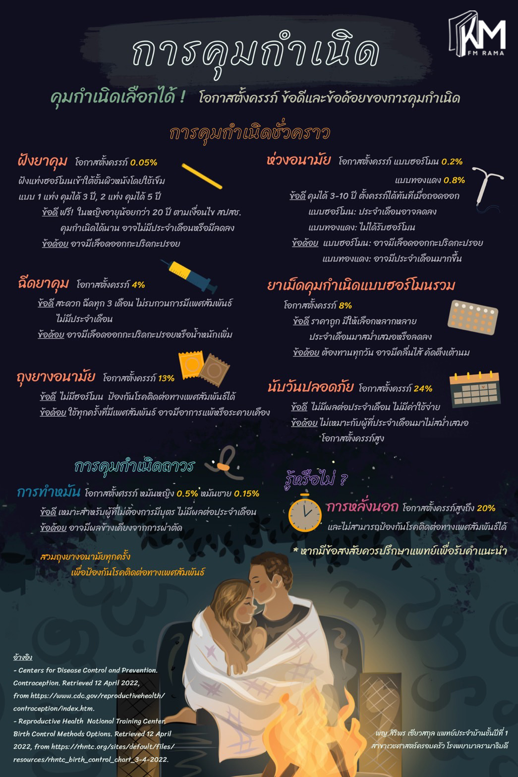 เอกสารประกอบ => PDF file การคุมกำเนิด ผู้เขียน พญ.สิริพร เขียวสกุล แพทย์ประจำบ้านภาควิชาเวชศาสตร์ครอบครัว โรงพยาบาลรามาธิบดี รุ่นที่ 21 19 พฤษภาคม 2565 เรียบเรียงบทความ โดย คณะกรรมการ KM ภาพหน้าปกโดย นางสาวมณีนุช กาเซ็มตีมะ