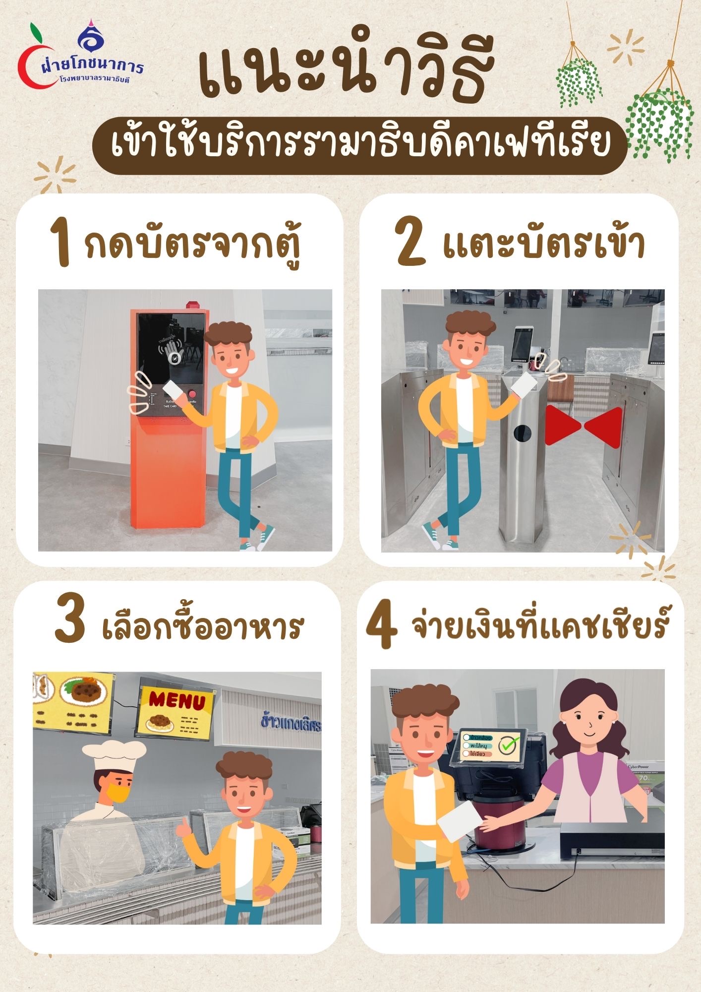 วิธีการเข้าใช้บริการรามาธิบดีคาเฟทีเรีย ฝ่ายโภชนาการ
