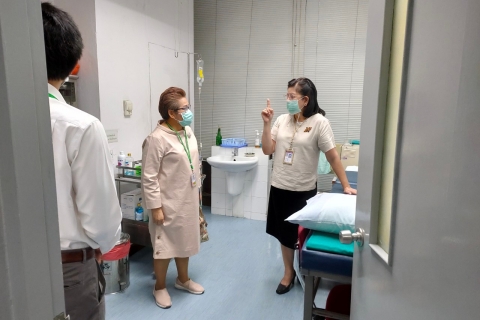 คุณพัชรี ภูรีนันทนิมิต หัวหน้างานบริหารธุรการศูนย์สนับสนุนพันธกิจและศูนย์เพื่อความเป็นเลิศ คณะแพทยศาสตร์โรงพยาบาลรามาธิบดี มหาวิทยาลัยมหิดล พร้อมด้วยเจ้าหน้าที่ เข้าร่วมประชุมการจัดตั้งสถานพยาบาลภายนอกคณะฯ ของศูนย์สุขภาพแนวหน้ารามาธิบดี ภายใต้สังกัดศูนย์สนับสนุนพันธกิจ กับ บริษัท การบินไทย จำกัด (มหาชน) พร้อมเยี่ยมชมสถานพยาบาลจำนวน 4 สถานที่ ดังนี้