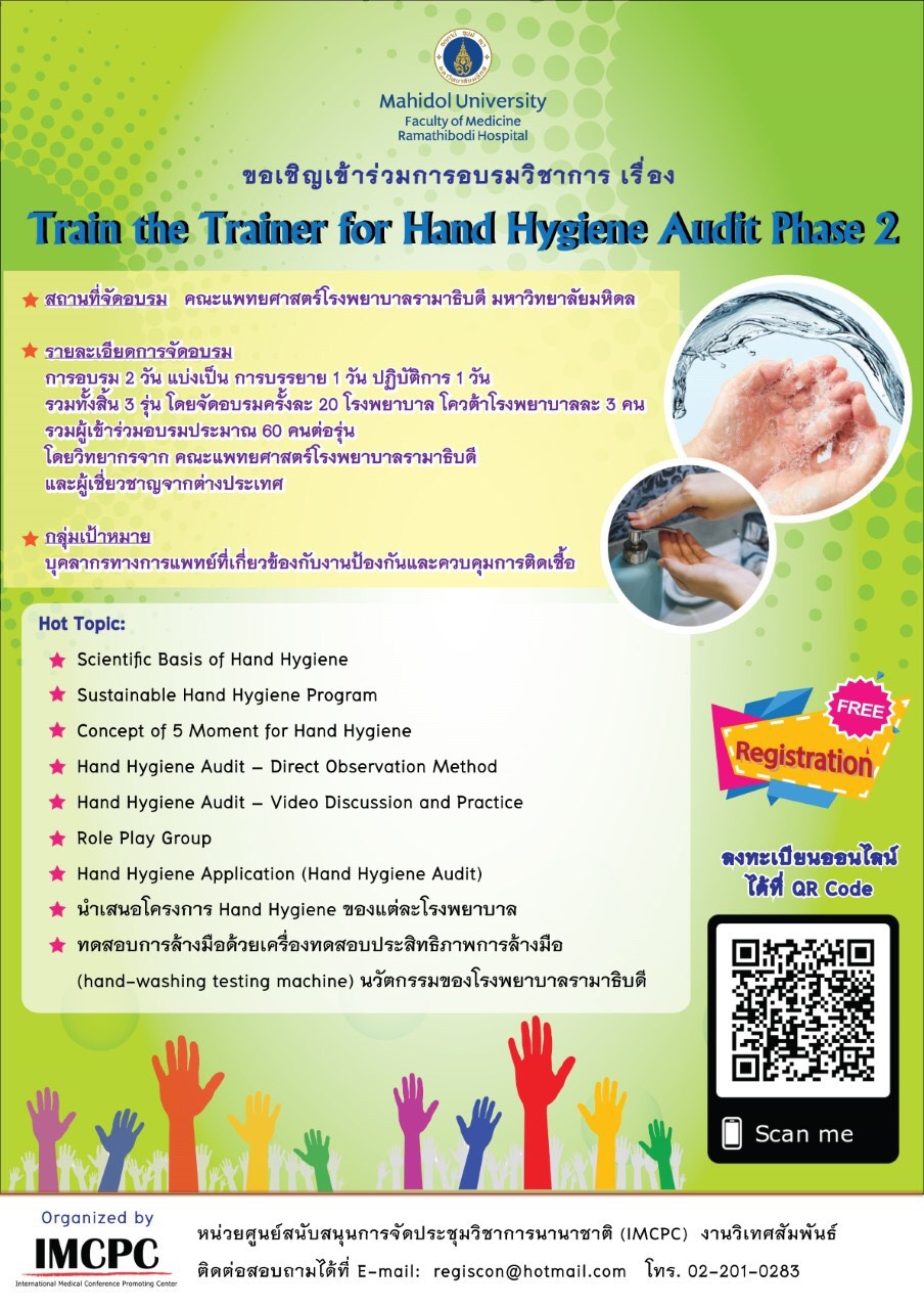 ขอเชิญเข้าร่วมอบรมวิชาการ Train the Trainer for Hand Hygiene Phase2