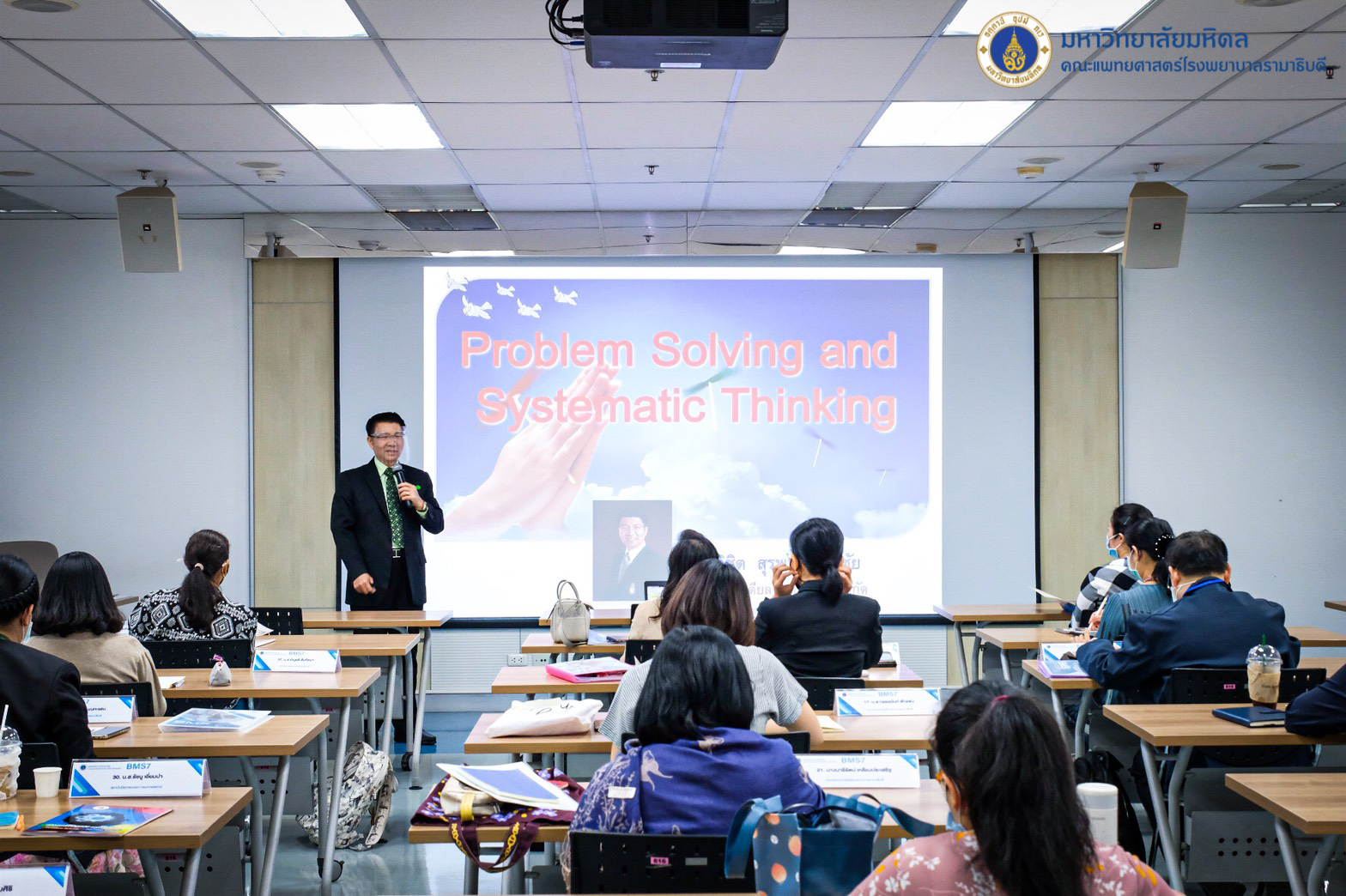 วันพุธที่ 1 กรกฎาคม 2563 ระหว่างเวลา 08:30 - 15:30 น. โรงเรียนการบริหารงานโรงพยาบาล คณะแพทยศาสตร์โรงพยาบาลรามาธิบดี มหาวิทยาลัยมหิดล ได้รับเกียรติจาก ดร.วิชิต สุรพนานนท์ชัย กรรมการผู้จัดการ บริษัท ไอเดียล อินโนเวชั่น จำกัด เป็นวิทยากรบรรยายในหัวข้อ “Problem Solving and Systematic Thinking” ให้แก่ผู้เข้ารับการอบรมหลักสูตร “ผู้บริหารระดับต้น” รุ่นที่ 7 (BMS7) ณ ห้อง 816 ชั้น 8 อาคารเรียนและปฏิบัติการรวมด้านการแพทย์และโรงเรียนพยาบาลรามาธิบดี คณะแพทยศาสตร์โรงพยาบาลรามาธิบดี มหาวิทยาลัยมหิดล