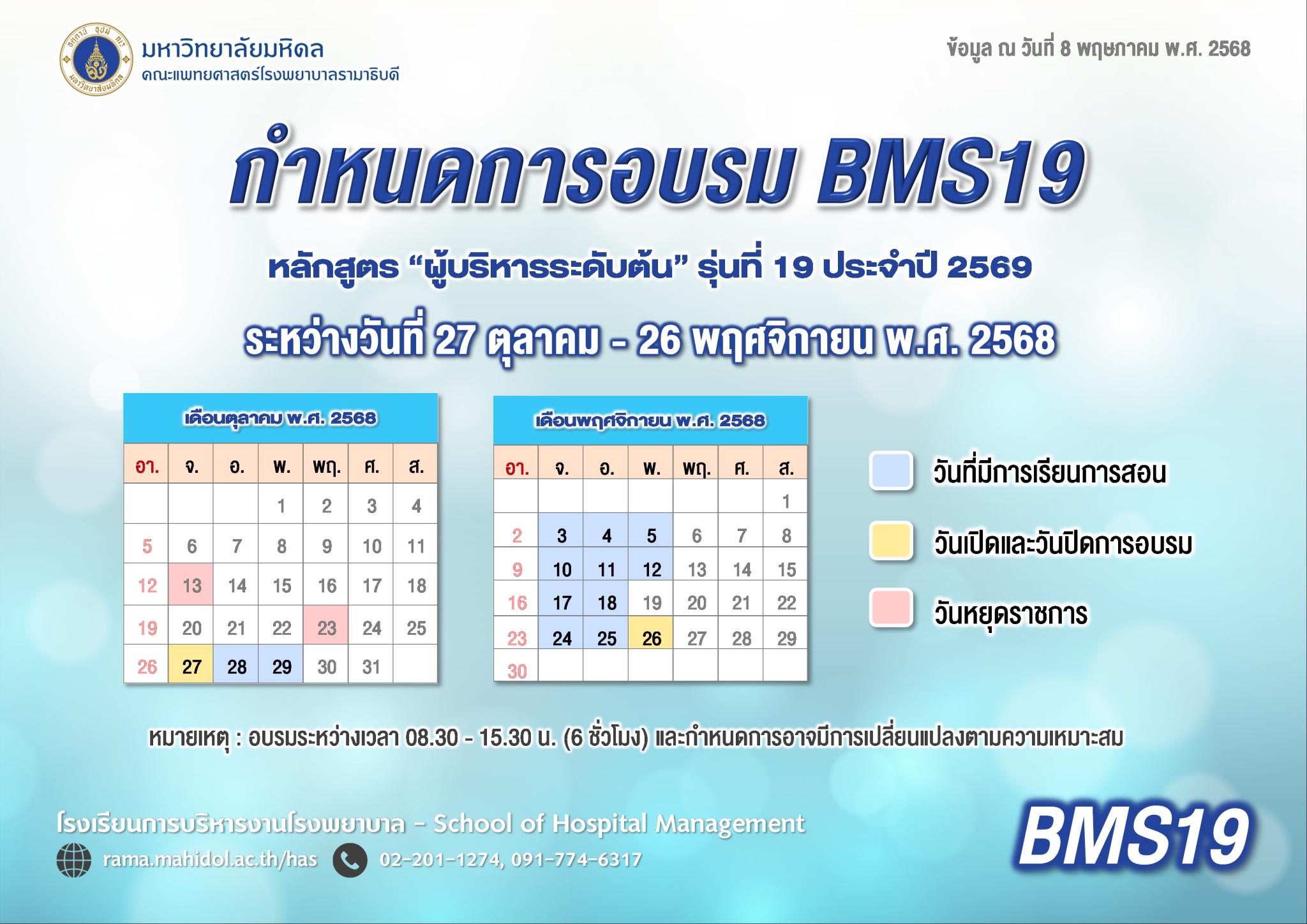ประกาศรายชื่อผู้เข้ารับการอบรมหลักสูตร “ผู้บริหารระดับต้น" รุ่นที่ 19 ประจำปี 2569 (BMS19)