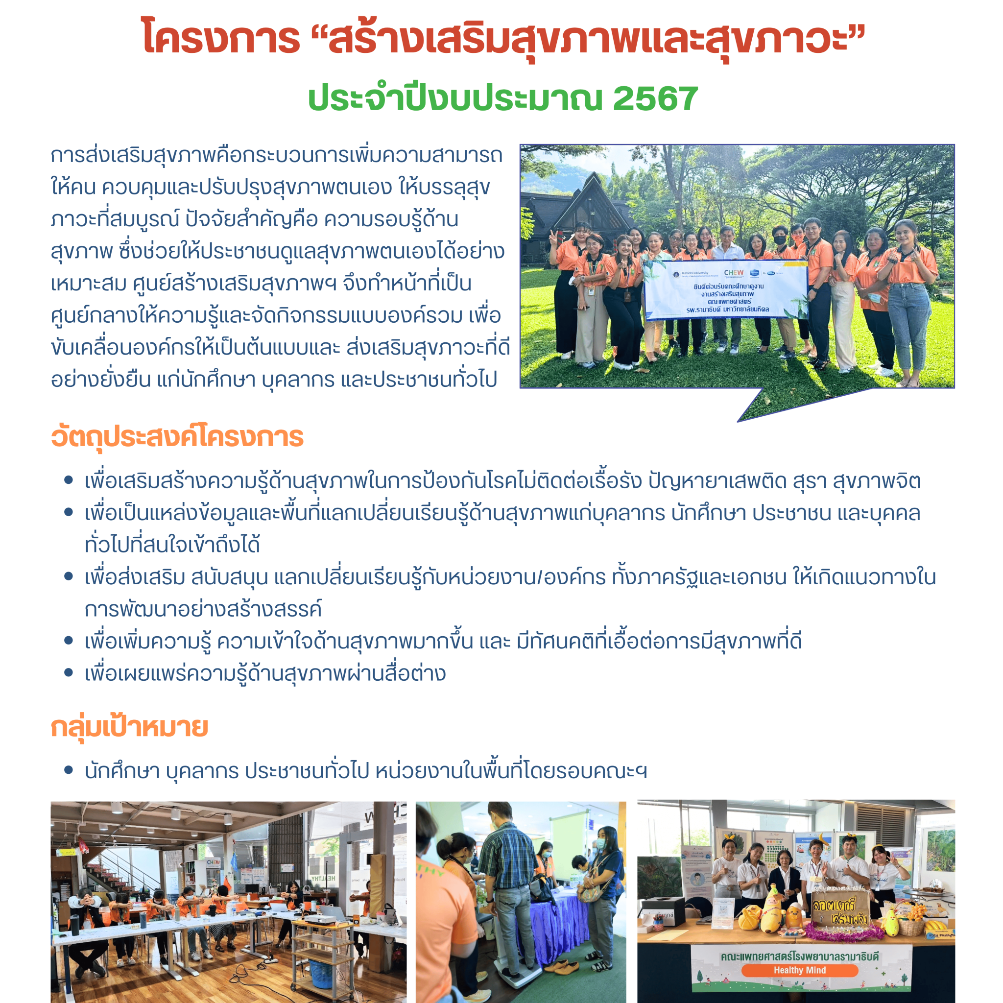 โครงการสร้างเสริมสุขภาพและสุขภาวะ ประจำปีงบประมาณ 2567