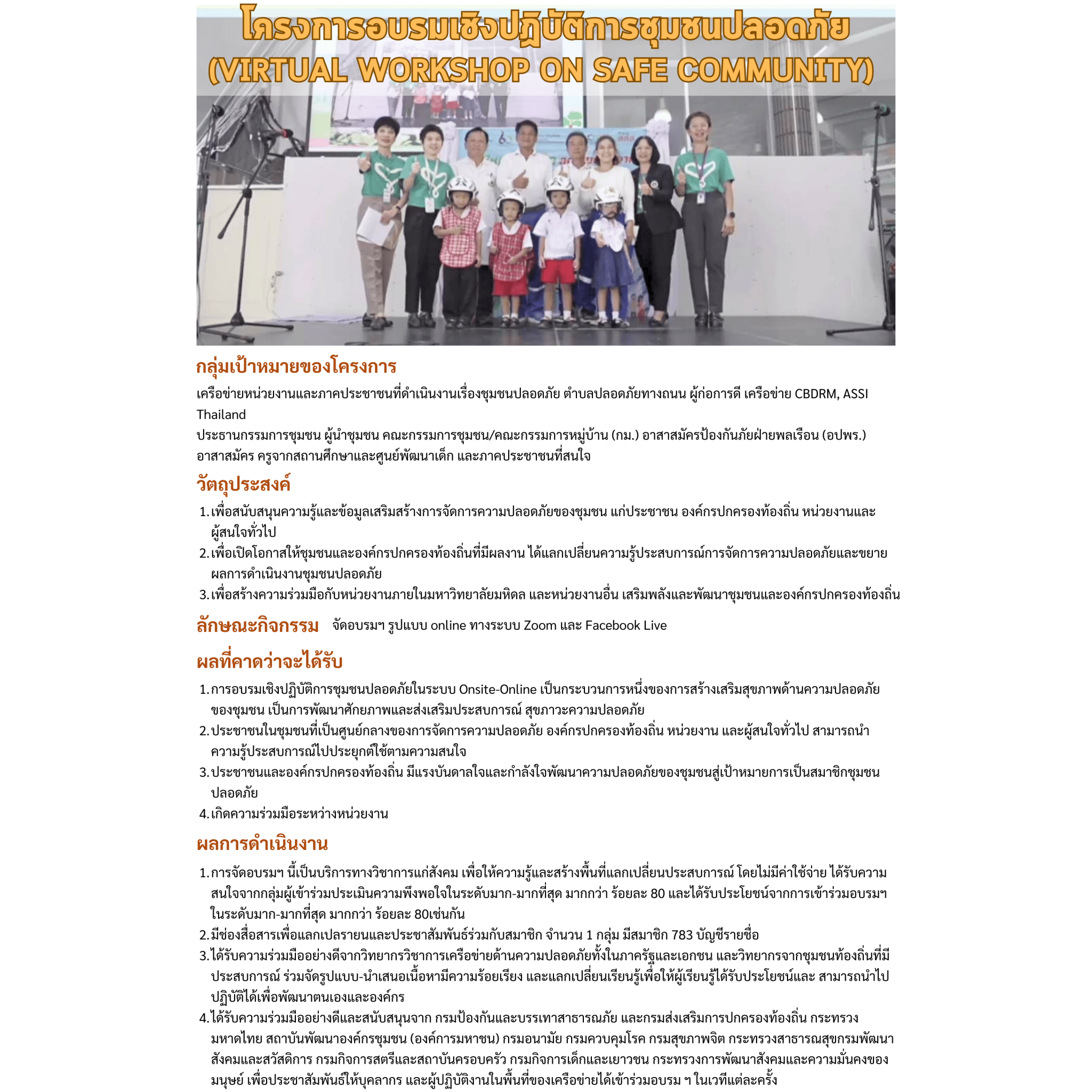 โครงการอบรมเชิงปฏิบัติการชุมชนปลอดภัย (Virtual Workshop on Safe Community) 68