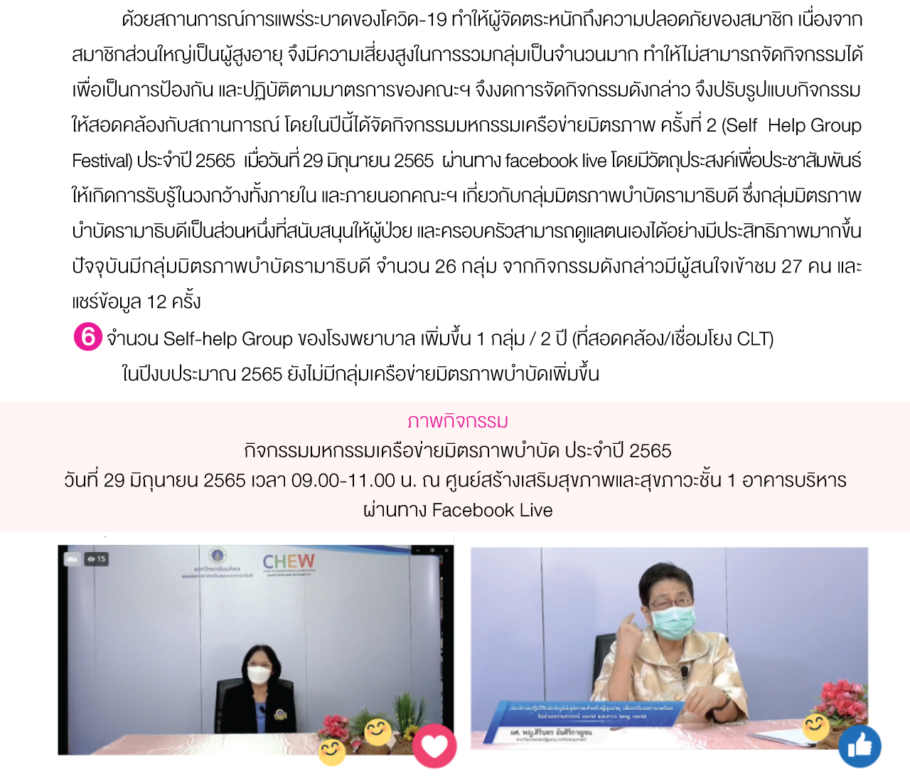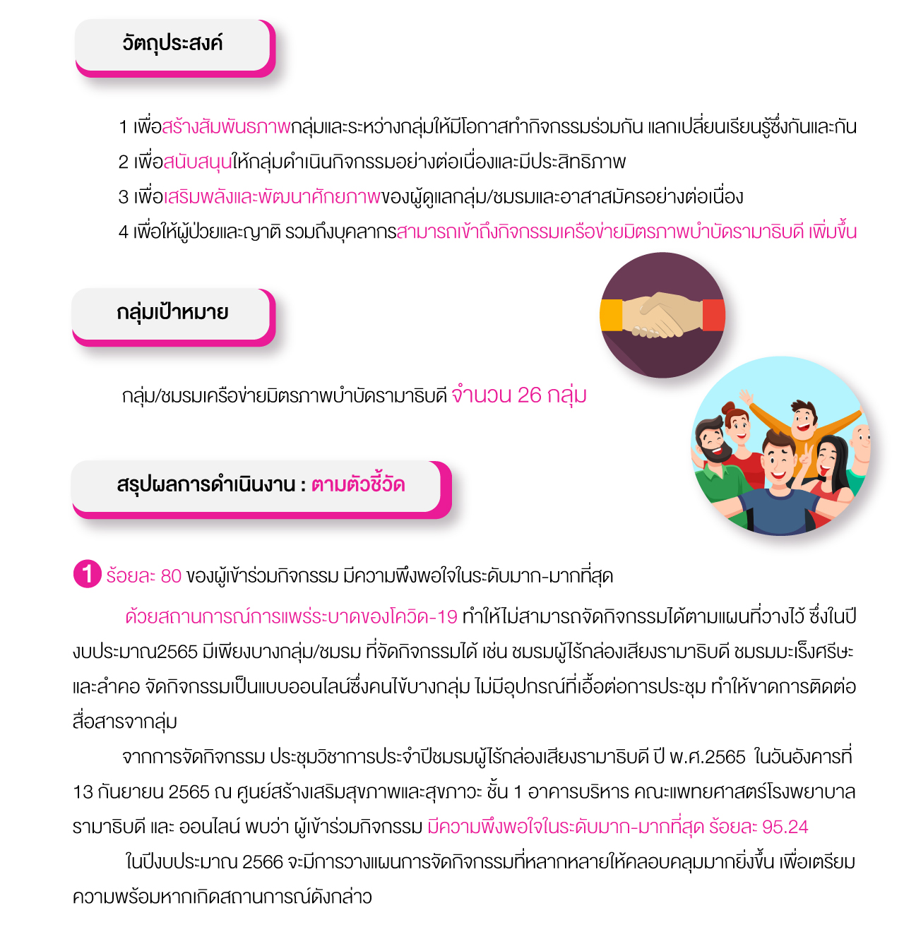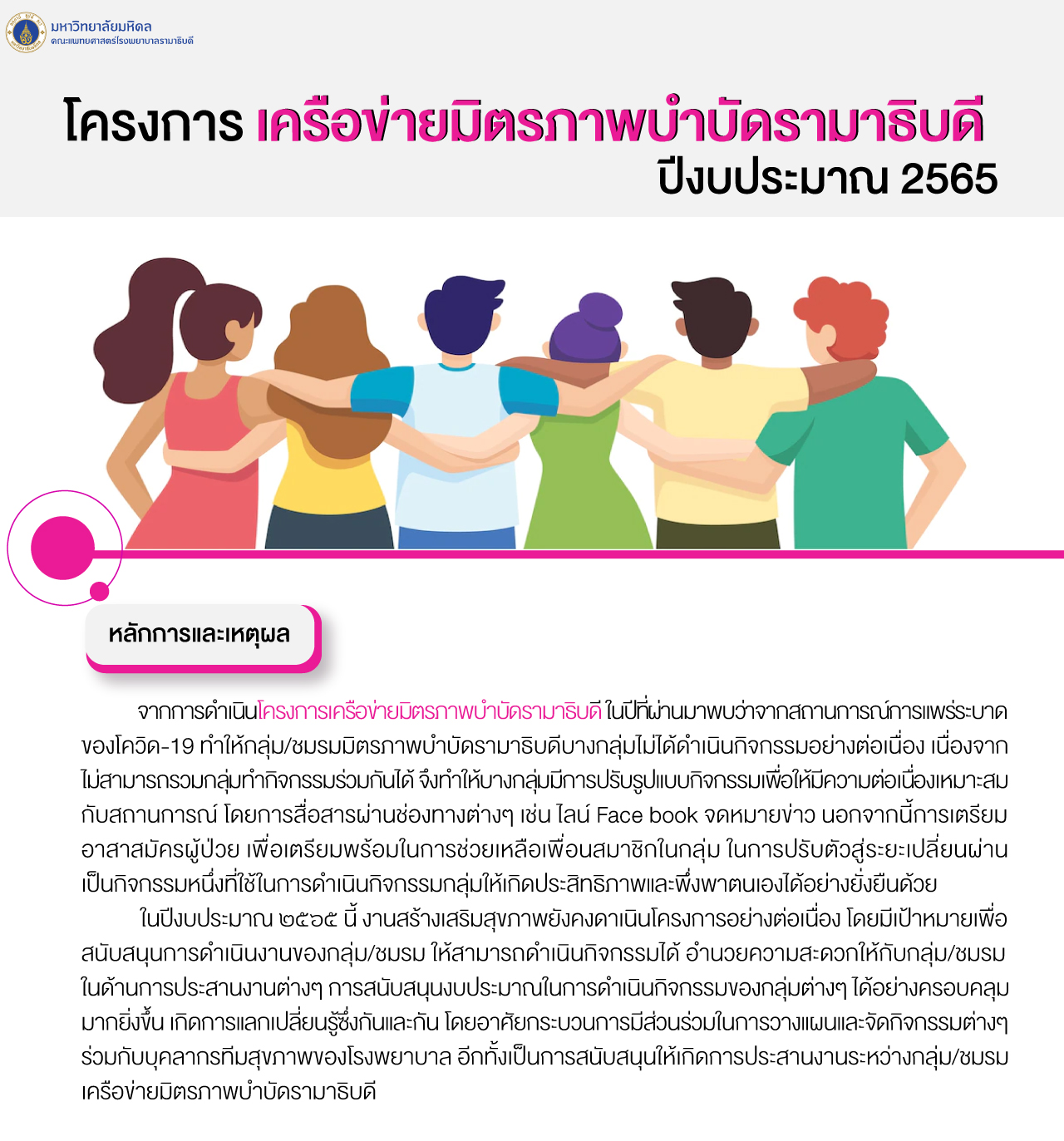 โครงการ เครือข่ายมิตรภาพบำบัดรามาธิบดี ปีงบประมาณ 2565