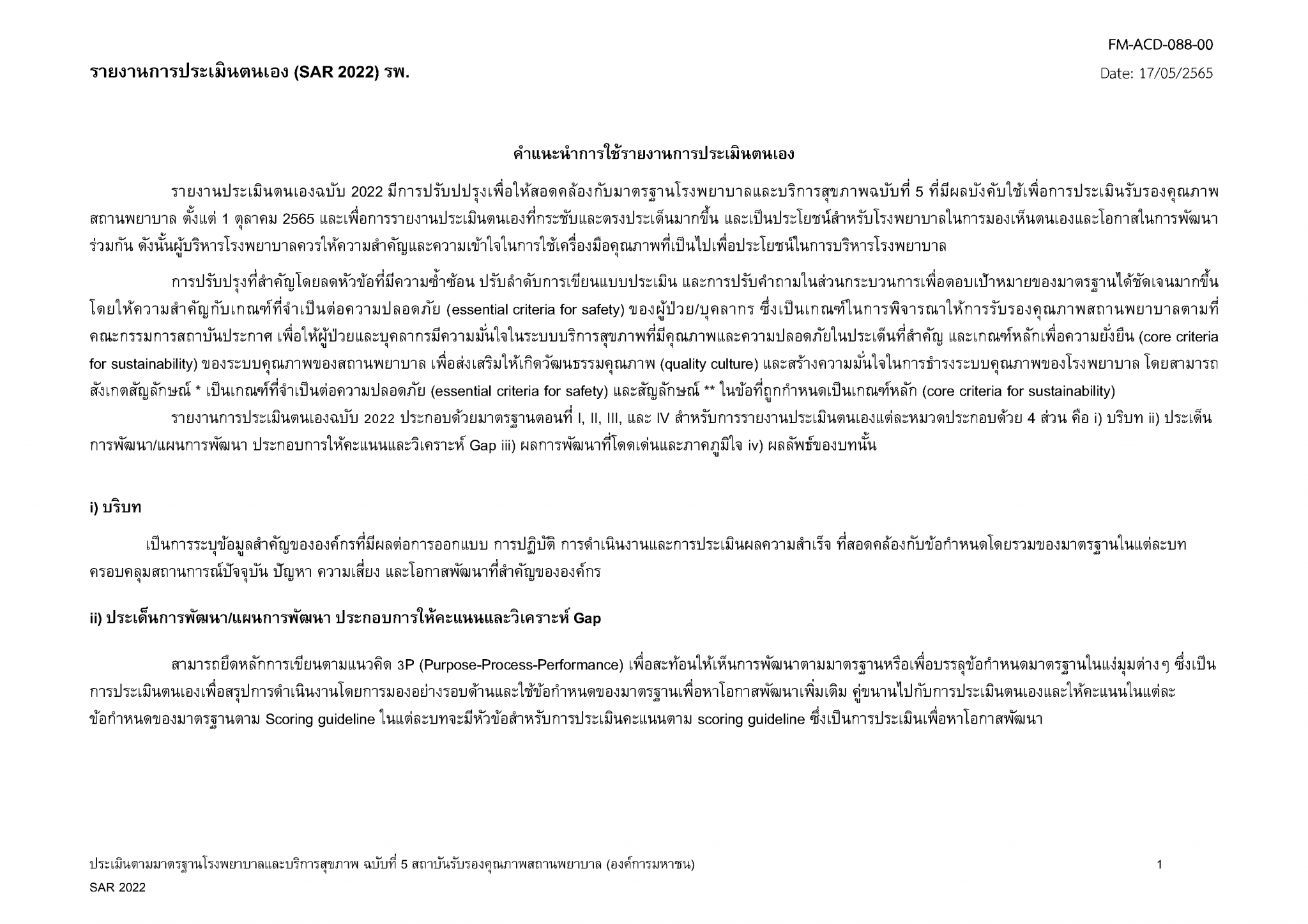 แบบฟอร์มรายงานการประเมินตนเอง (SAR 2022)