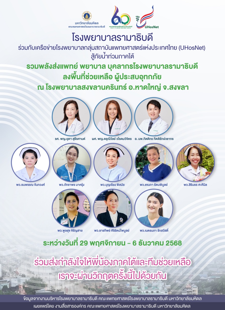 รวมพลังส่งแพทย์ พยาบาล บุคลากรโรงพยาบาลรามาธิบดี ลงพื้นที่ช่วยเหลือ ผู้ประสบอุทกภัย