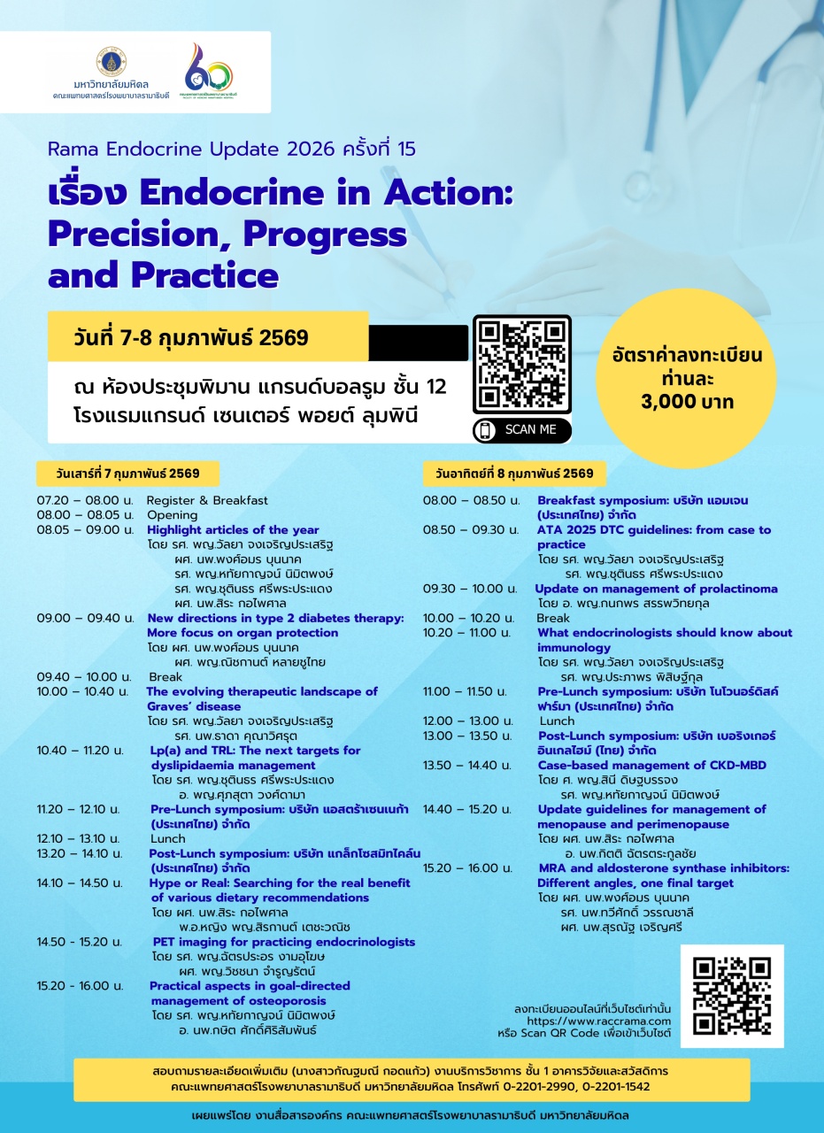 Rama Endocrine Update 2026 ครั้งที่ 15 เรื่อง Endocrine in Action: Precision, Progress and Practice
