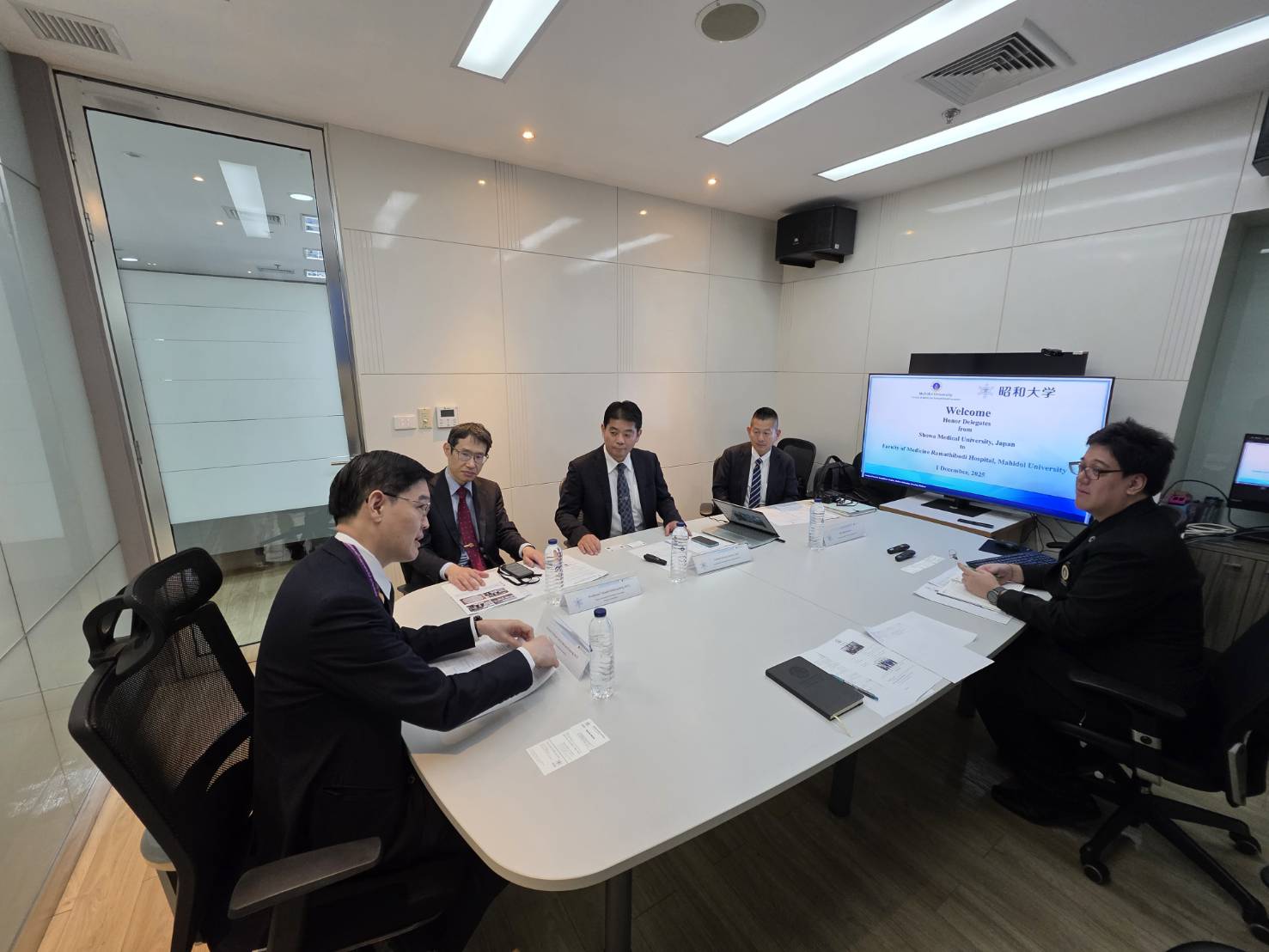 On December 1, 2025, the Faculty of Medicine Ramathibodi Hospital, Mahidol University, Assistant Professor Suchin Worawichawong, M.D., Deputy Dean for International Relations, warmly welcomed a distinguished delegation from Showa Medical University, Japan, for a high-level meeting aimed at bolstering academic and student mobility cooperation.