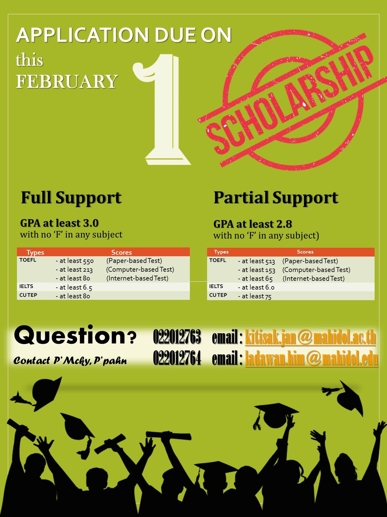 Please do not hesitate to contact พี่ป่าน พี่แมค, International Relations Section for more information; tel: 02-201-2764