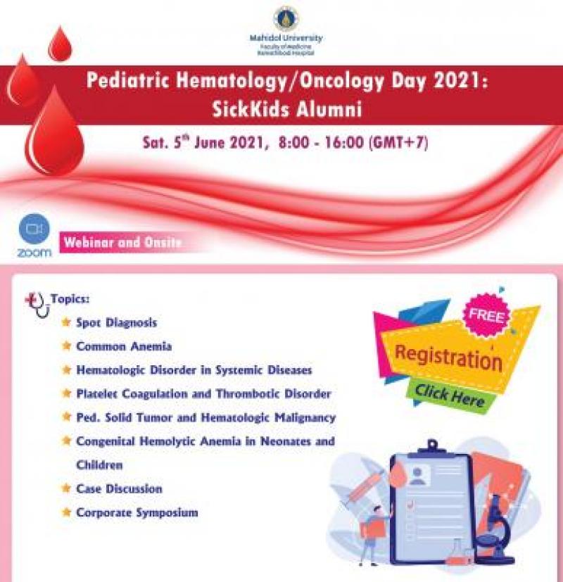 การประชุมกุมารแพทย์ด้านโลหิตวิทยาและมะเร็งวิทยาในเด็ก วันเสาร์ที่ 5 มิถุนายน 2564 Webinar and Onsite