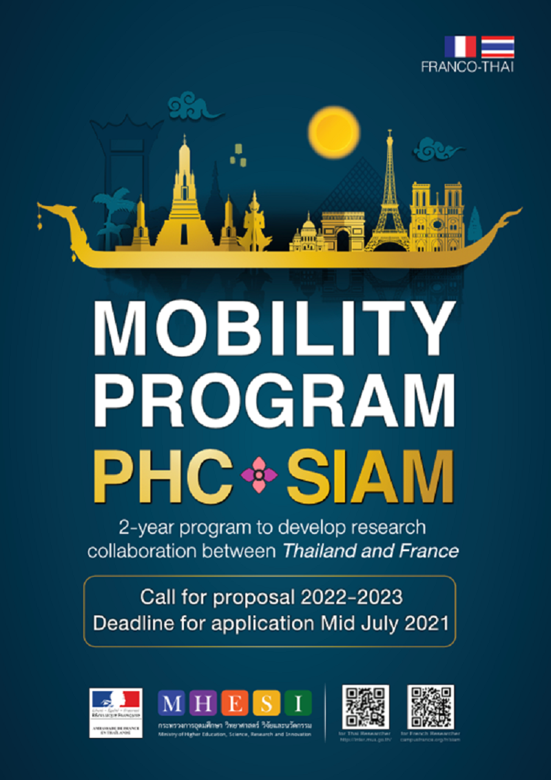 The Office of the Higher Education Commission, in cooperation with the French Embassy in Thailand, is launching a call for proposals for the Franco-Thai Cooperation Programme in Higher Education and Research (Franco-Thai Mobility Programme/PHC SIAM) 2022-2023 in order to: